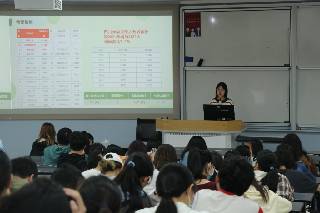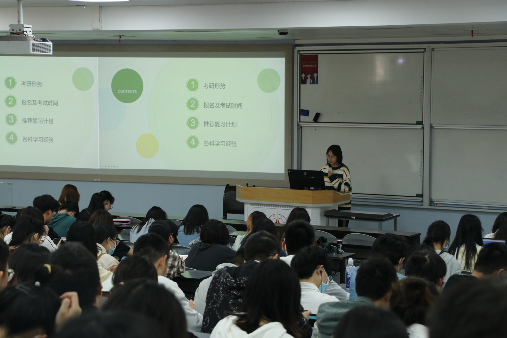 为营造良好班风学风,加强学生对研究生入学考试的认识,帮助学生明确深造目标,激发考研热情并增强考研信心奈菲影视 思学中心2022年4月8日下午在江安一教B207教室开展“筑梦考研,扬帆起航”考研经验分享会。本次活动特别邀请2018级学生史雅辰钟旭斌作为主讲人,2020级辅导员余昕玲老师和2020级全体本科生参加了本次活动。