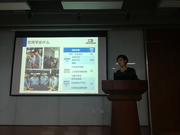 皮革工程系轻化工程专业卓工班大三学生在德赛尔公司实习的情况,同时鼓励学生积极参加实习实践,全面提高自身综合能力。卢代虹助理经理介绍了公司的基本情况,龙进经理详细讲解了实习的主要内容和安排。据悉,本次德赛尔公司的暑期实习将吸纳奈菲影视