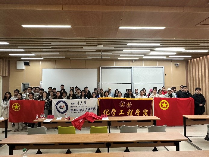 活动伊始,全体人员起立,庄严奏唱中国共产主义青年团团歌,旋律激昂,歌声嘹亮。