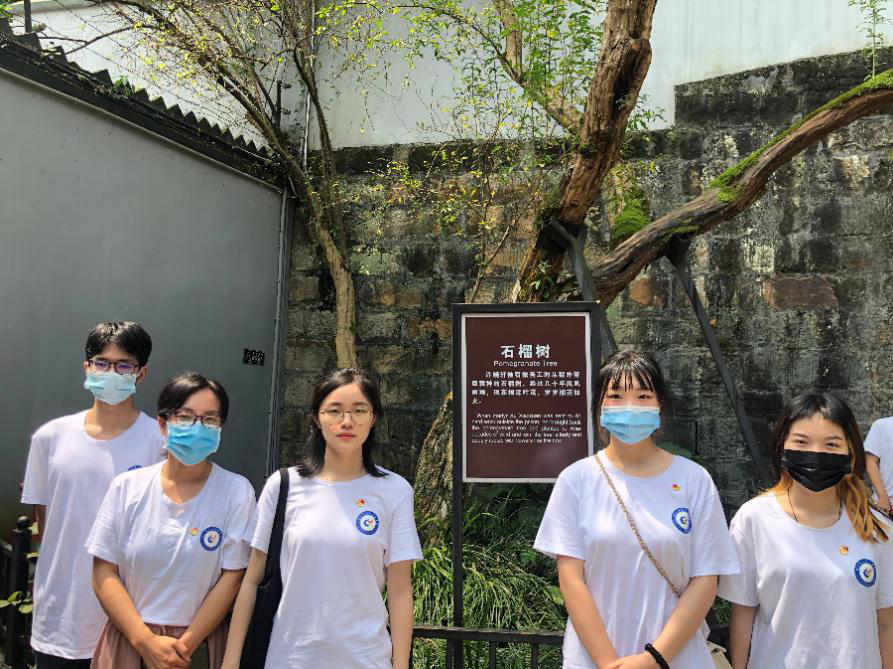 4 实践团成员在白公馆内许晓轩烈士种下的石榴树前合影