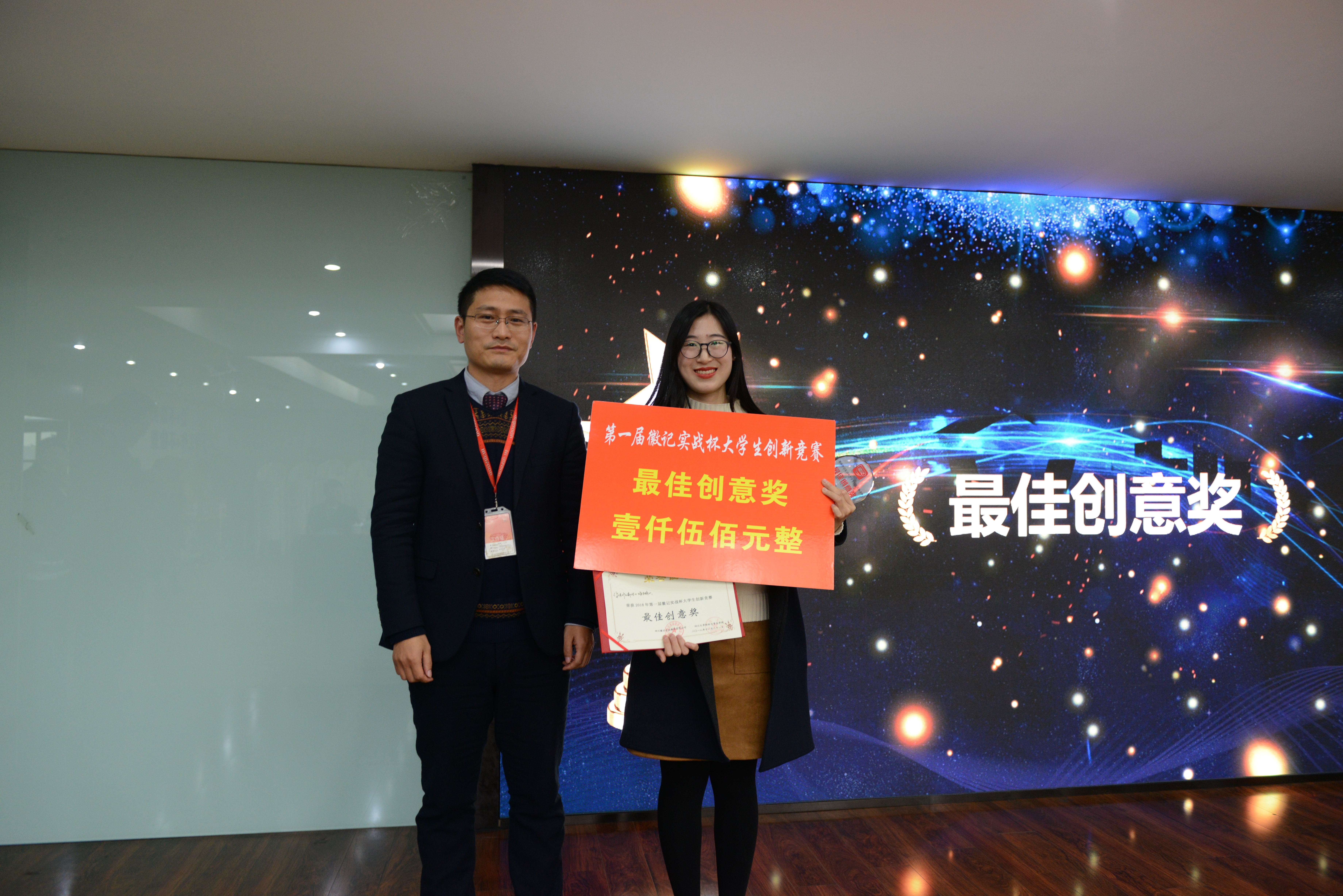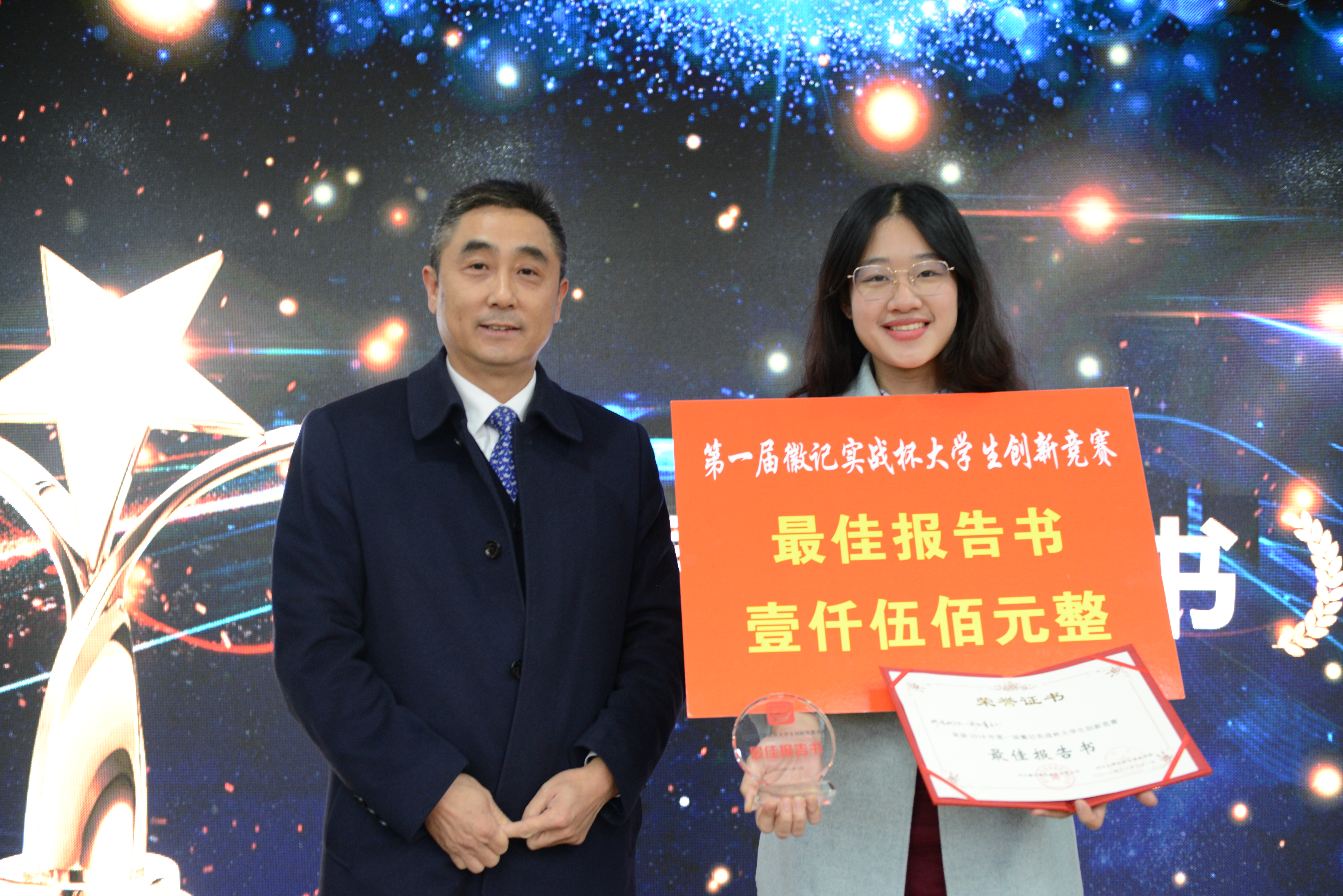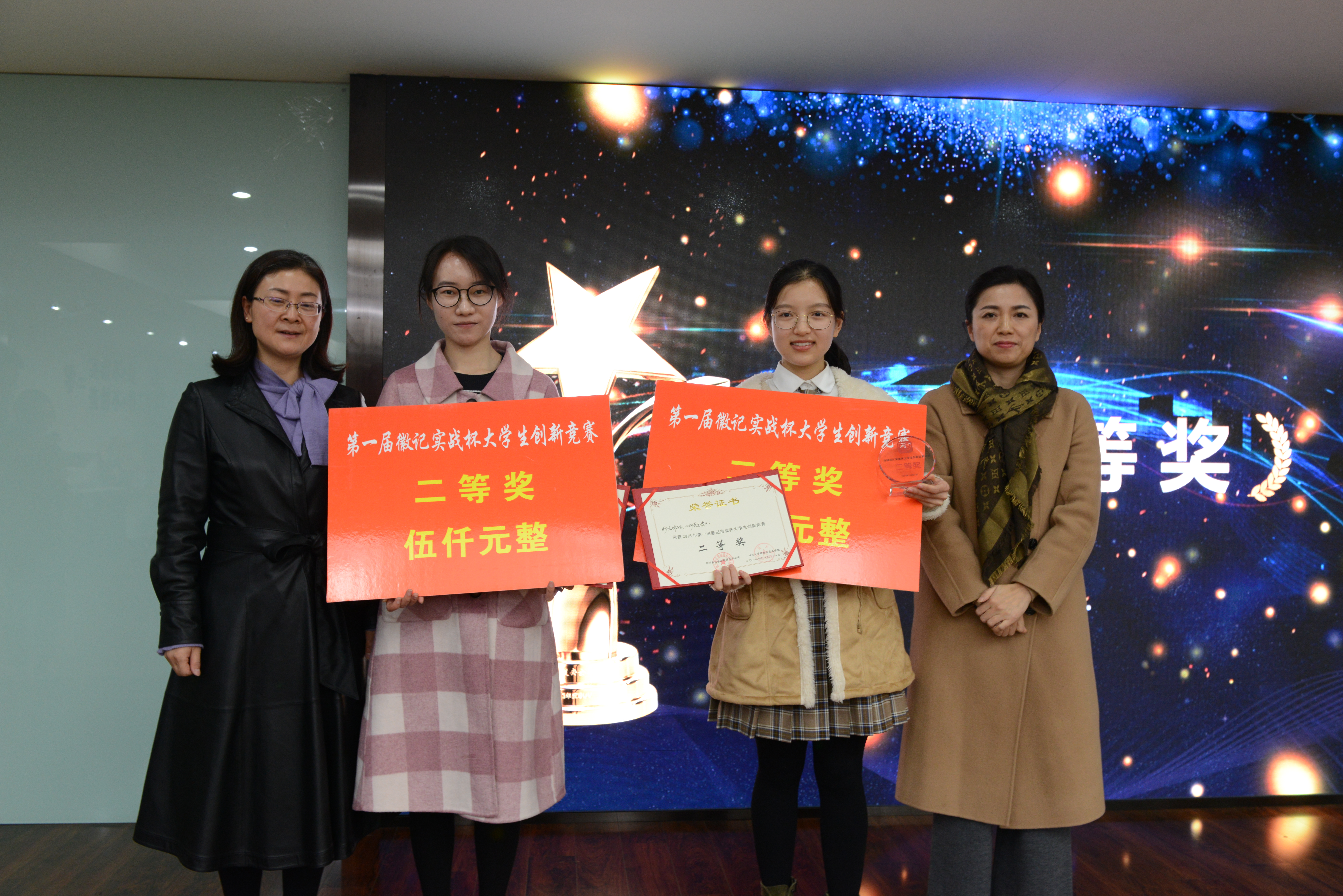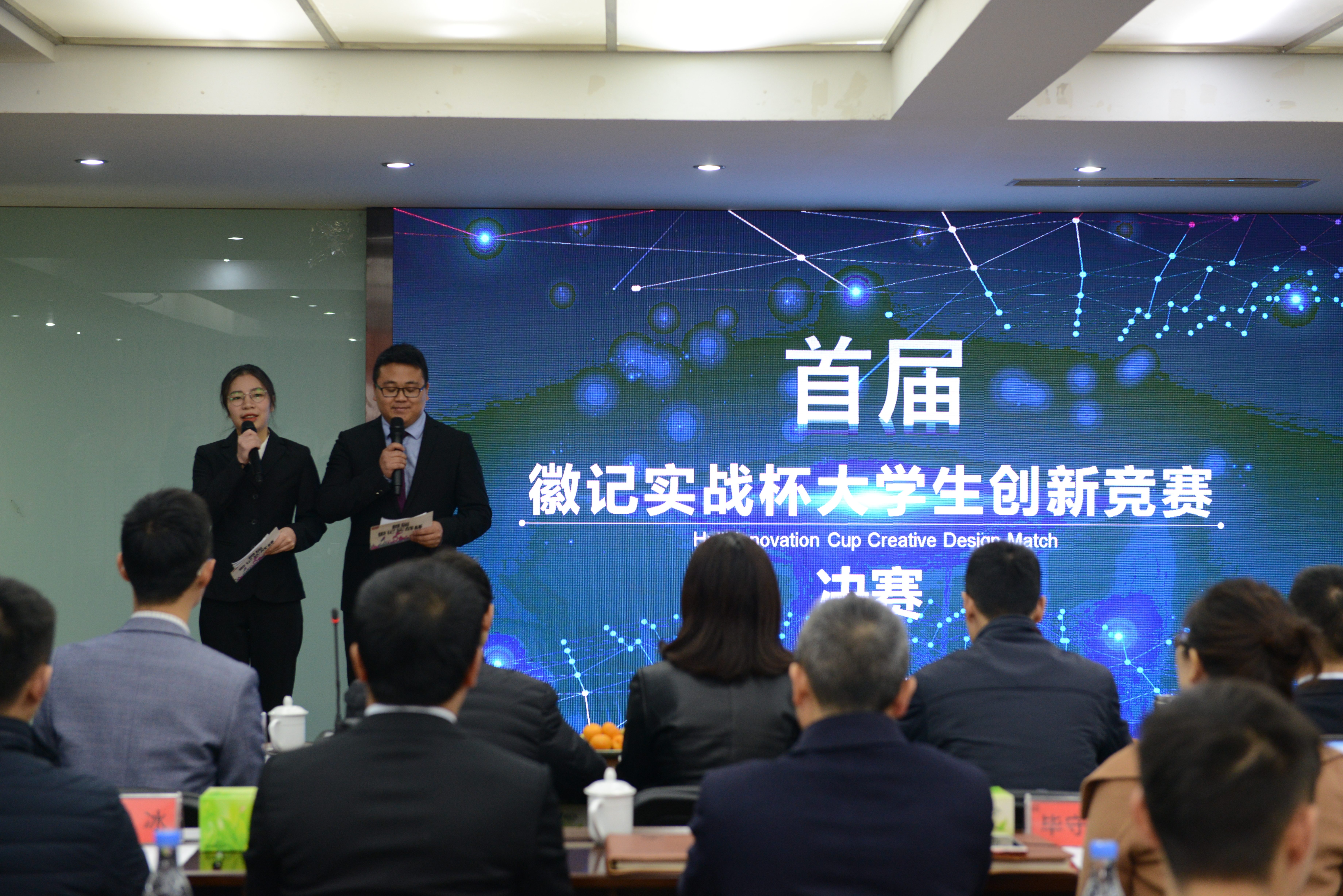 徽记股份有份有限公司董事长吕金刚先生和轻纺与食品学院冯国涛副书记先后为决赛致辞;在主持人介绍了入围决赛的队伍�比赛规则、评分细则以及奖项设置后,入围队伍进行了作品展示�经过激烈角逐,首届“徽记实战杯”大学生创新竞赛决赛结果顺利出炉�