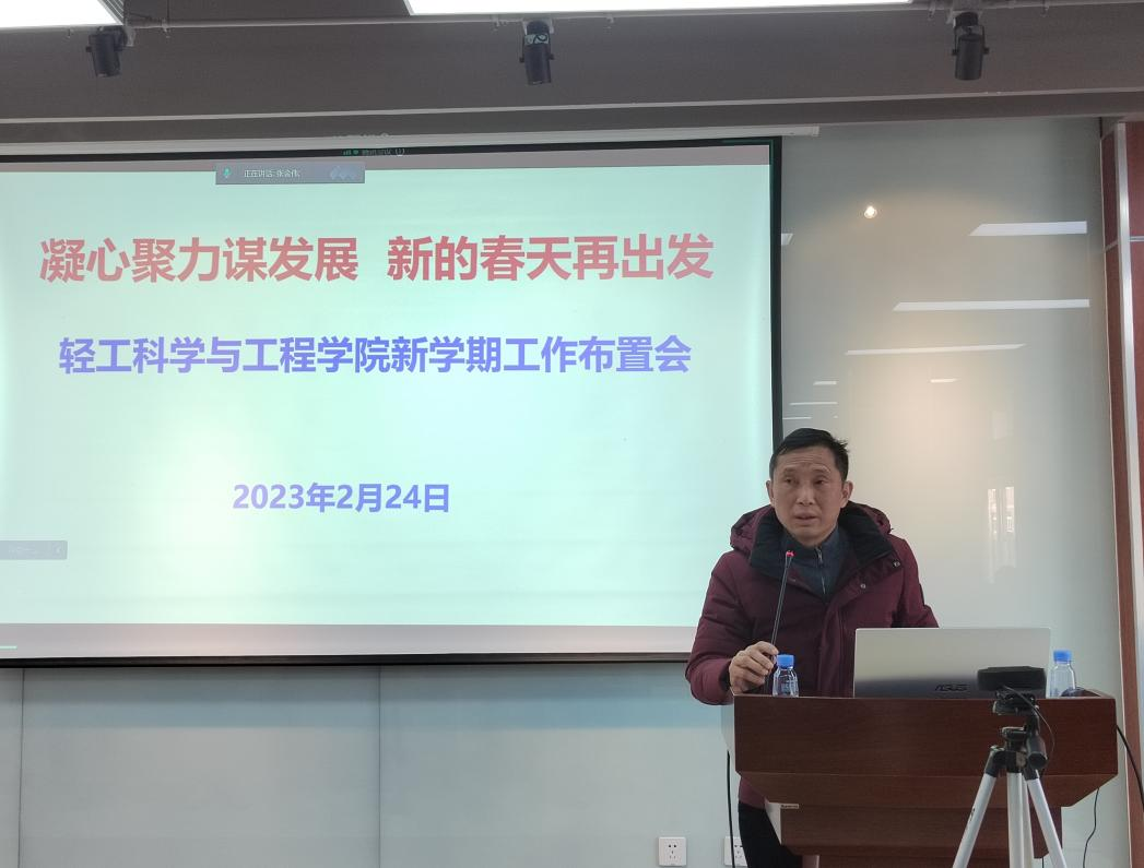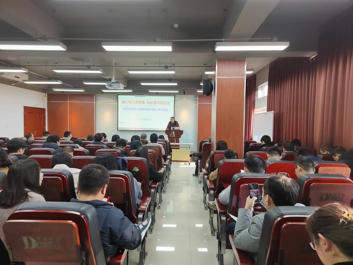 本次新学期工作布置会及时向全院教职工传达了学校新学期工作布置暨“双代会”精神,并安排部署了学院2023年度重点工作,让全院师生更加了解学院当前面临的现状与挑战,明确学院的发展思路与安排,进一步激发了全院教师干事创业的斗志和活力,为学院2023年在人才培养、师资队伍与科学研究等方面再上新台阶而努力奋斗,为建设中国特色世界一流大学贡献轻工力量。
