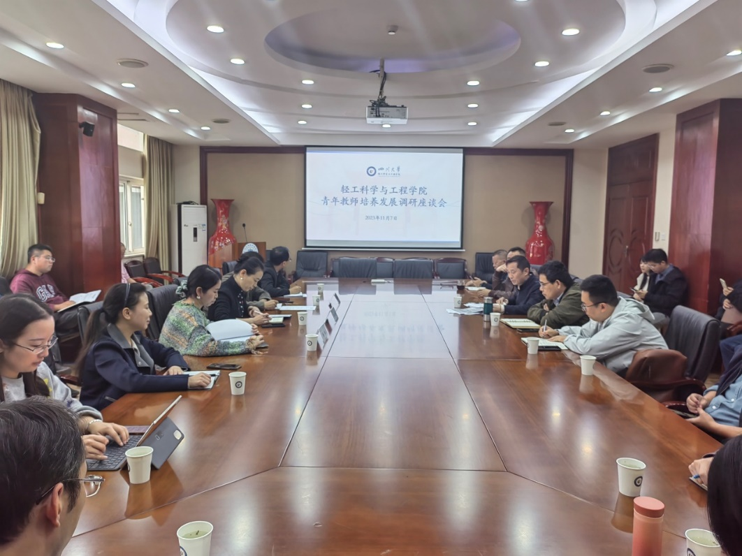 �加强师资队伍建设�推动学院高质量发展,轻工科学与工程学院于2023�11�7�在皮革楼209会议室召开了青年教师培养发展调研座谈会,学校人事处(人才办�、科研院、发规处、教务处、校工会相关负责同志,学�领导班子�学科带头人、青年教师参�本次调研座谈。会议由党委书记李天�主持�