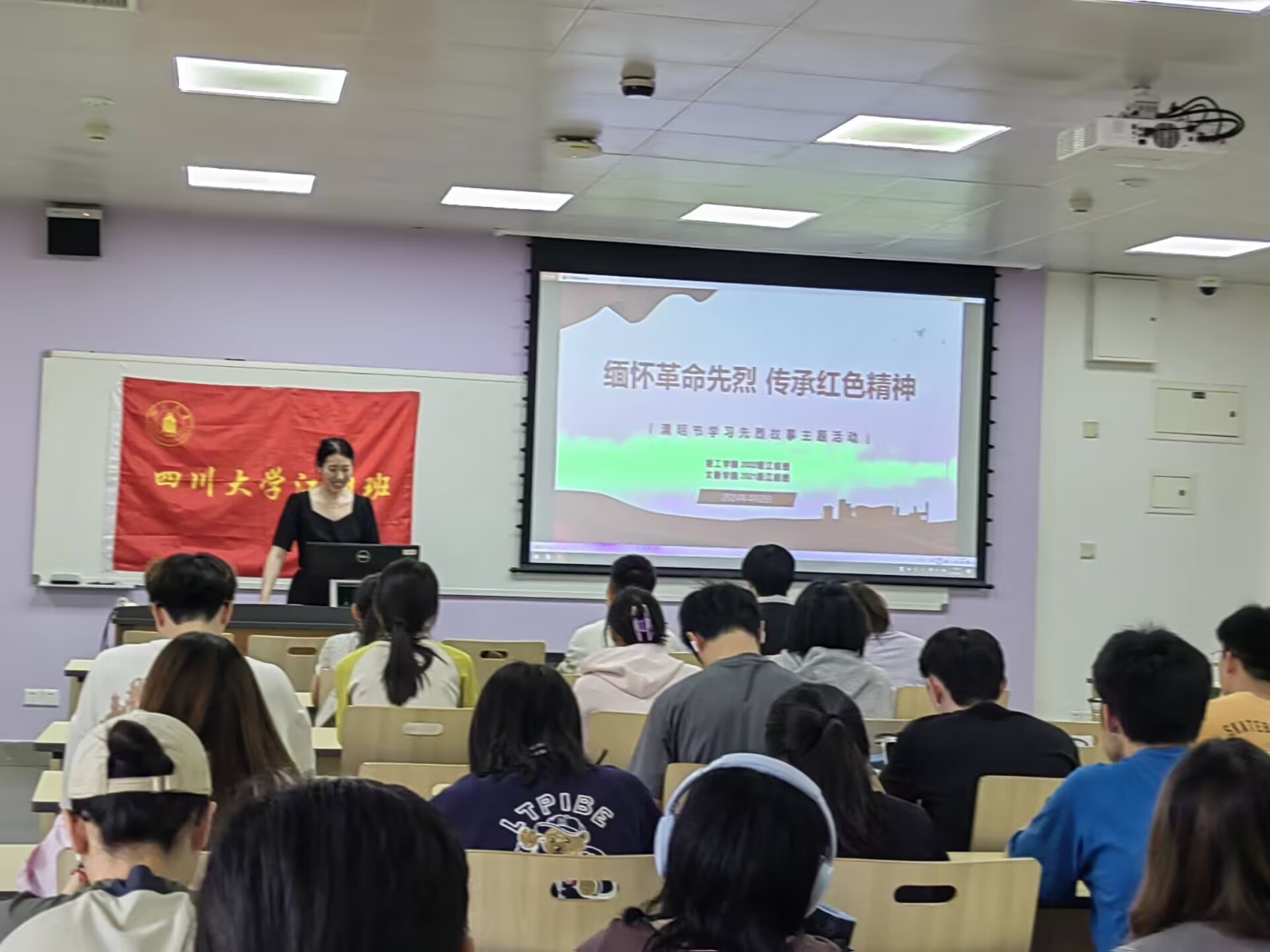 活动第三部分,主持人对今天所讲内容进行总结,并号召大家继承先烈遗志,发扬革命精神,以新时代青年的标准来要求自身,将革命精神薪火相传为祖国贡献自己的一份力量。