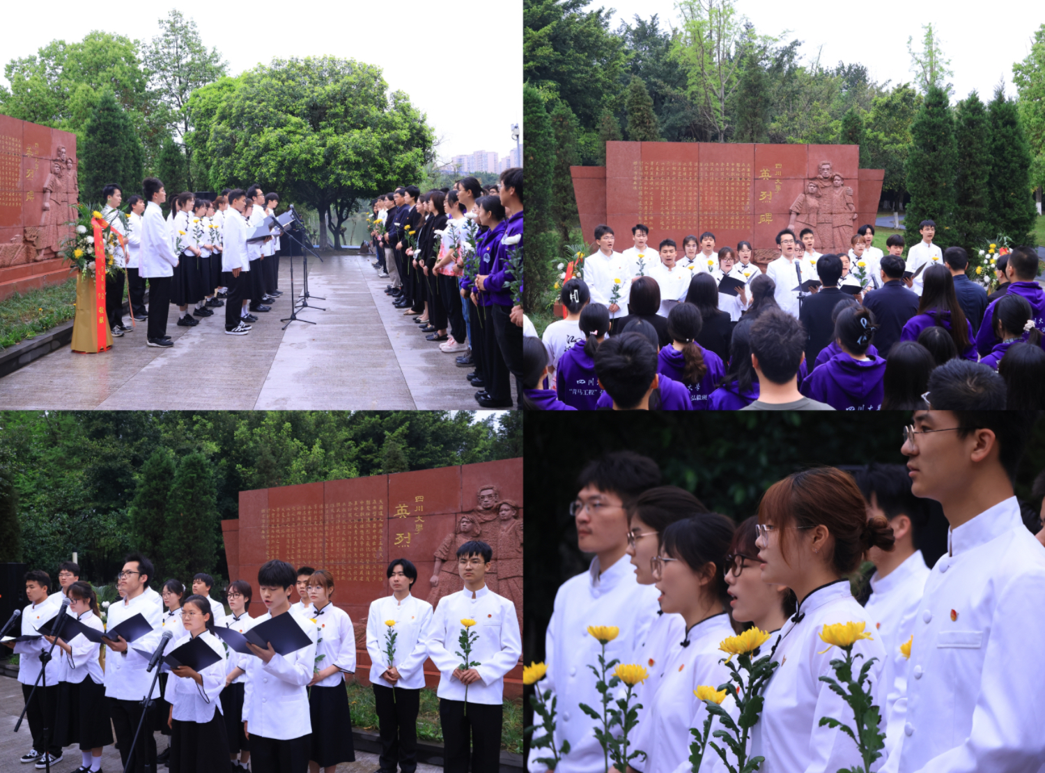 2022级“江姐班”在江安校区英烈杯广场参加“学习革命先辈崇高精神 争做又红又专时代新人”2024年清明祭英烈主题教育活动。校党委副书记刘晓虎,学校相关单位负责人,江姐班、“青马工程”弘毅班以及各学院师生代表共同参与本次活动。