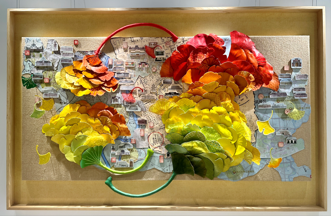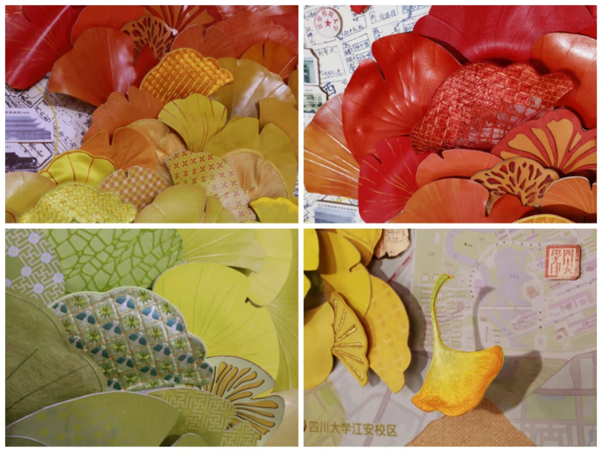 《永续》以四川大学百年历史为灵感,通过128片银杏叶的巧妙布局展现了川大128年的发展历程和不断探索、蜕变的精神。