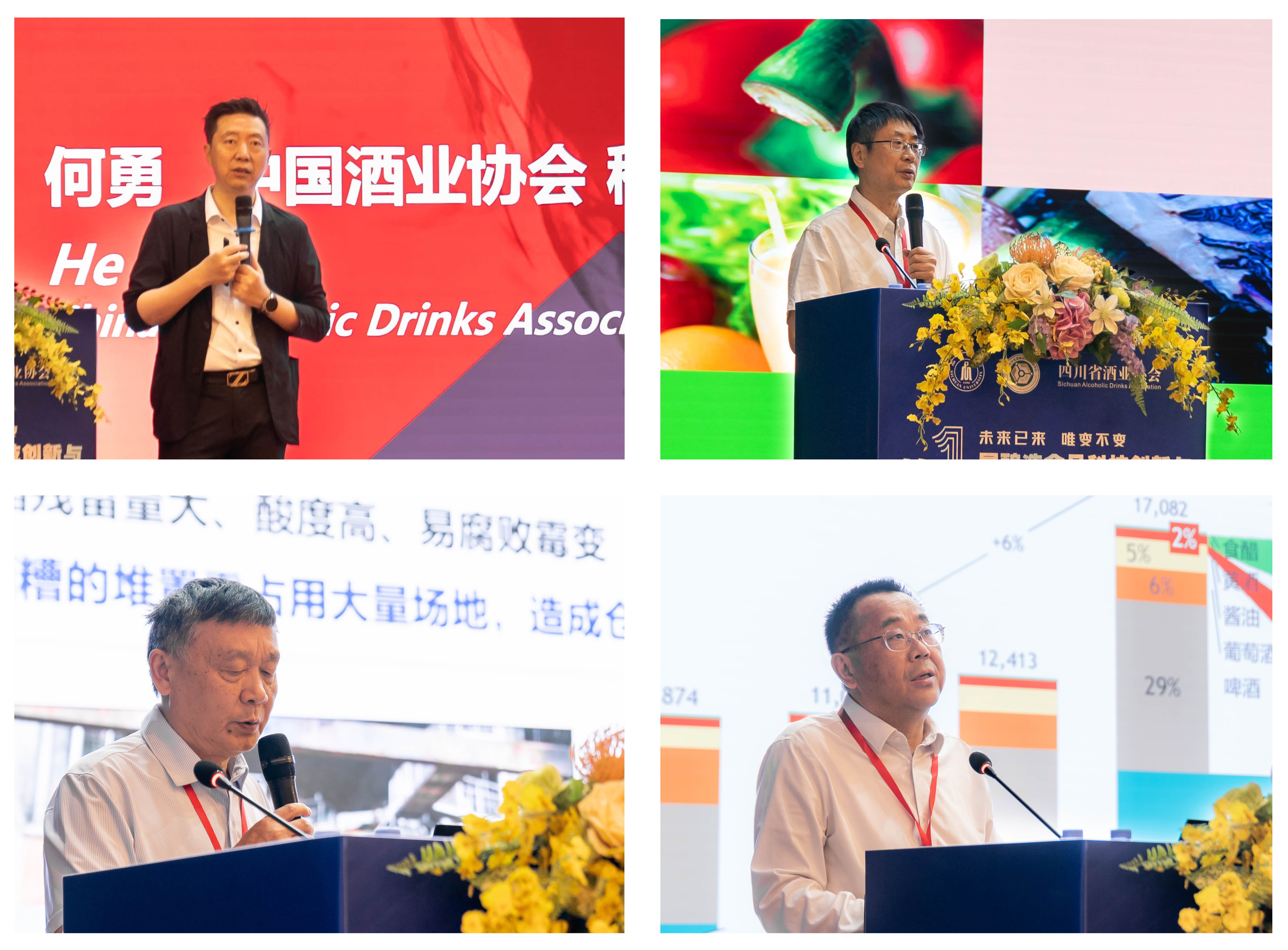 中国酒业协会何勇秘书长、南昌大学谢明勇院士、四川大学石碧院士、四川大学许正宏教授分别做主题报�