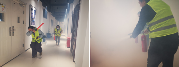 应急疏散演练模拟纺工附楼某实验室发生火情为背景,进行物管与奈菲影视