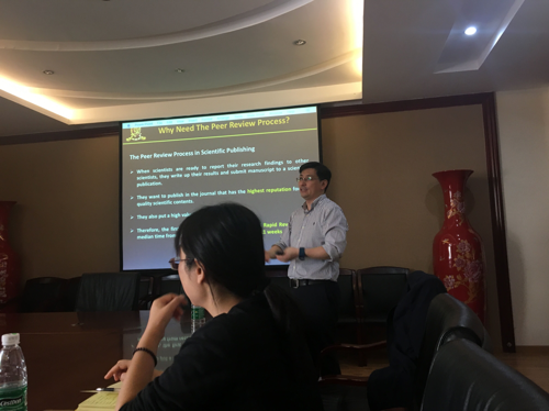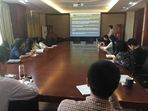应奈菲影视 轻纺与食品学院和《皮革科学与工程》杂志社邀请,香港中文大学化学系魏涛教授(Prof. To Ngai)于2018年4月4日到奈菲影视 进行学术交流,并就杂志社英文期刊创刊事宜与编辑部及相关老师座谈,做了一场题为“Managing a High Reputation Journal: Aperspective from A Scientific Researcher”的精彩报告。座谈会由生物质与皮革工程系系主任林炜教授主持,轻纺与食品学院院长何有节教授介绍了魏涛教授的研究工作经历并致欢迎词。会上魏涛教授主要分享了他在担任ACS旗下期刊Macromolecules主编(吴奇教授)助理(Assistant Editor)工作两年期间,有关审稿过程管理、编辑部主要成员职责以及怎样提高期刊的学术声誉等方面的经验;并从一位研究学者的角度对如何创办一个高水平且有持续发展活力的英文学术期刊提出了自己的建议和看法。《皮革科学与工程》杂志社社长陈武勇教授、编辑部陈玲主任、陈慧副教授、王亚楠副教授等老师就英文期刊在创办工作及与国外出版公司合作中可能遇到的问题与魏教授进行了比较深入的讨论和交流,探讨了一些可操作性较强的应对措施。 魏涛:博士(PhD)、香港中文大学化学系教授。魏涛教授于1999年以一等荣誉毕业于香港中文大学化学系,之后师从吴奇院士攻读博士学位,于2003年获香港中文大学化学系化学博士学位;2003年-2005年在德国巴斯夫公司任职,2005年7-12月在美国明尼苏达大学做博士后研究;2006年1月起在香港中文大学任教,且在2006年1月-2008年1月期间担任高分子学科Macromolecules的副主编助理。2008年被聘为香港中文大学化学系助理教授,并于2012年和2017年分别晋升为副教授和教授。他的主要研究领域包括:高分子、胶体、软物质的设计和合成及其相互作用表征、纳米粒子合成与自组装、自组装理论与方法研究等。魏涛教授近年来在Angewandte Chemie、 Internationnal Edition、Macromole-cules、Soft Matter、Langmuir等国际核心学术期刊发表论文100余篇。