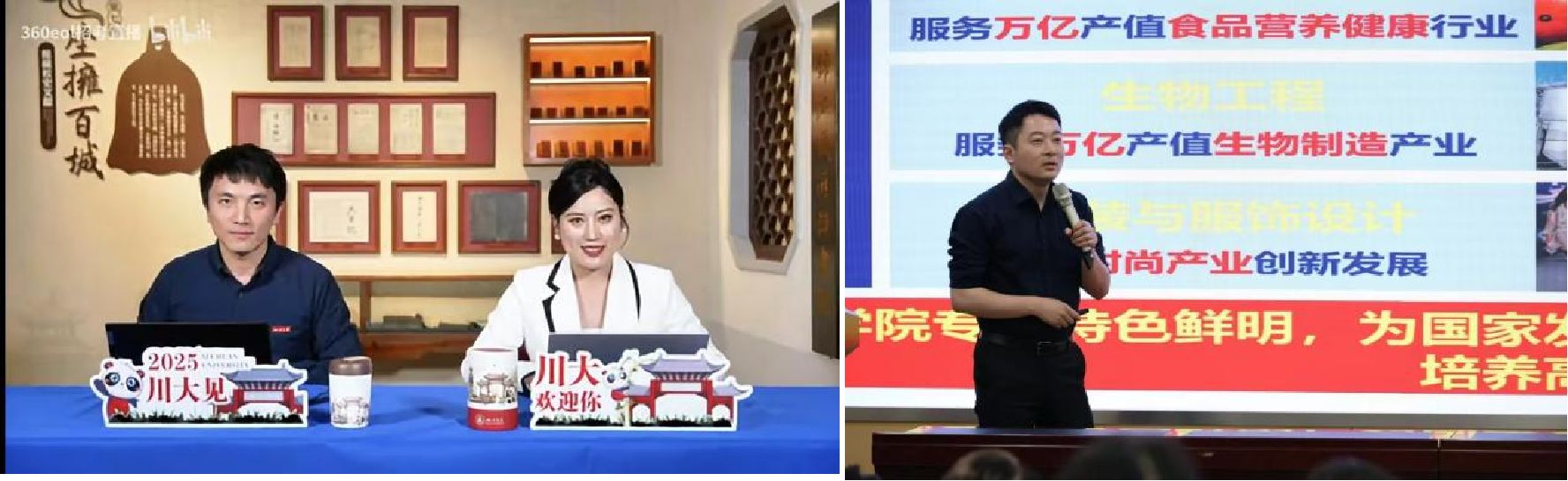 学院注重发挥师资优势,打造“教授讲专业”特色品牌活动。石碧院士做客四川广播电视台专访解读“生物质技术与工程”专业优势与发展前景;周加境教授领衔开展招生宣讲直播在线答疑解惑,吸引海量考生关注;陈意等多名教授深入中学开展专题讲座,有效提升了学院专业影响力与品牌吸引力�