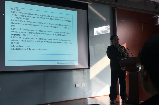 2017年12月4日上午9时,中国农业大学程永强教授来奈菲影视 开展“魔芋葡甘露聚糖与面团各组分相互作用及对产品功能影响”学术报告,食品工程系何强教授、吕远平教授、迟原龙副教授、赵志峰副教授、卜迁副教授、钟凯博士、任尧博士等多名教师以及100余名研究生和本科同学参加。