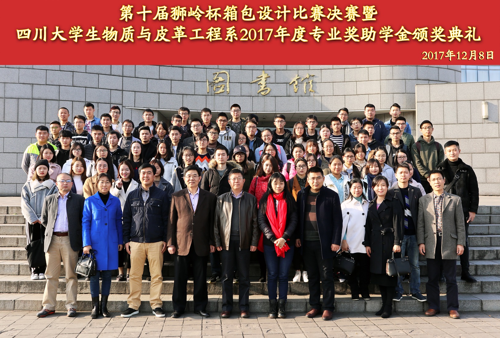 决赛结束后,由学院副院长彭必雨教授主持生物质与皮革工程系2017年度颁奖典礼。彭院长首先介绍了到场嘉宾,随后林炜教授代表生物质与皮革工程系致辞,林主任感谢设奖单位及专程到成都参加颁奖典礼的设奖单位嘉宾,感谢他们对皮革高等教育的关心与支持,感谢他们对川大学子的支助与鼓励,也对获奖同学表达了衷心的祝贺。同时,林主任结合学校的“双一流”建设对同学们提出了殷切的期望。中国皮革工业协会秘书长陈占光先生作为设奖单位代表进行了讲话,表示对同学们的祝贺及鼓励。随后,党委冯国涛副书记宣读了《关于表彰轻纺与食品学院生物质与皮革工程系2017年度优秀个人、优秀班级的决定》。接下来在欢快的音乐声中逐一进行了颁奖。