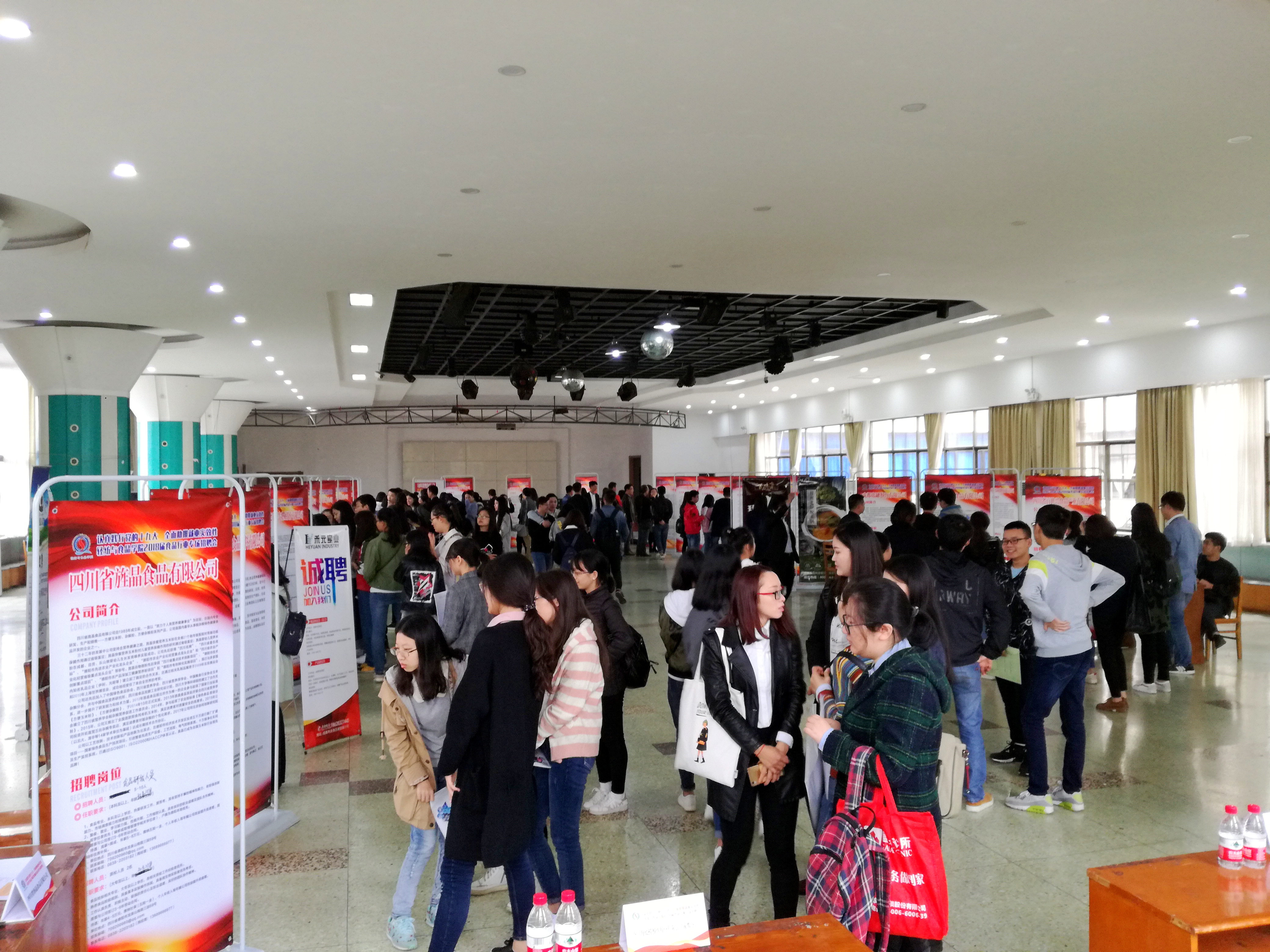 望江校区西区学生活动中心三楼顺利举办。学院党委冯国涛副书记、学院副院长何强教授、食品工程系系主任吕远平教授、食品工程系副系主任贾利蓉教授等领导莅临招聘会现场,并与用人单位和毕业生进行深入交流。