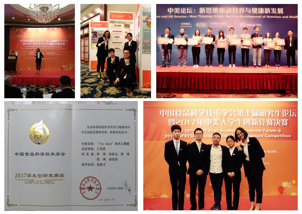 2017年11月07至09日,由中国食品科学技术学会和杜邦营养与健康(中国)主办、江南大学承办的两岸三地和中美学生创新竞赛在无锡成功举行。来自美国康奈尔大学、浙江大学、华南理工大学、江南大学、东北农业大学等国内外近30所知名高校的300余名师生参加了比赛。