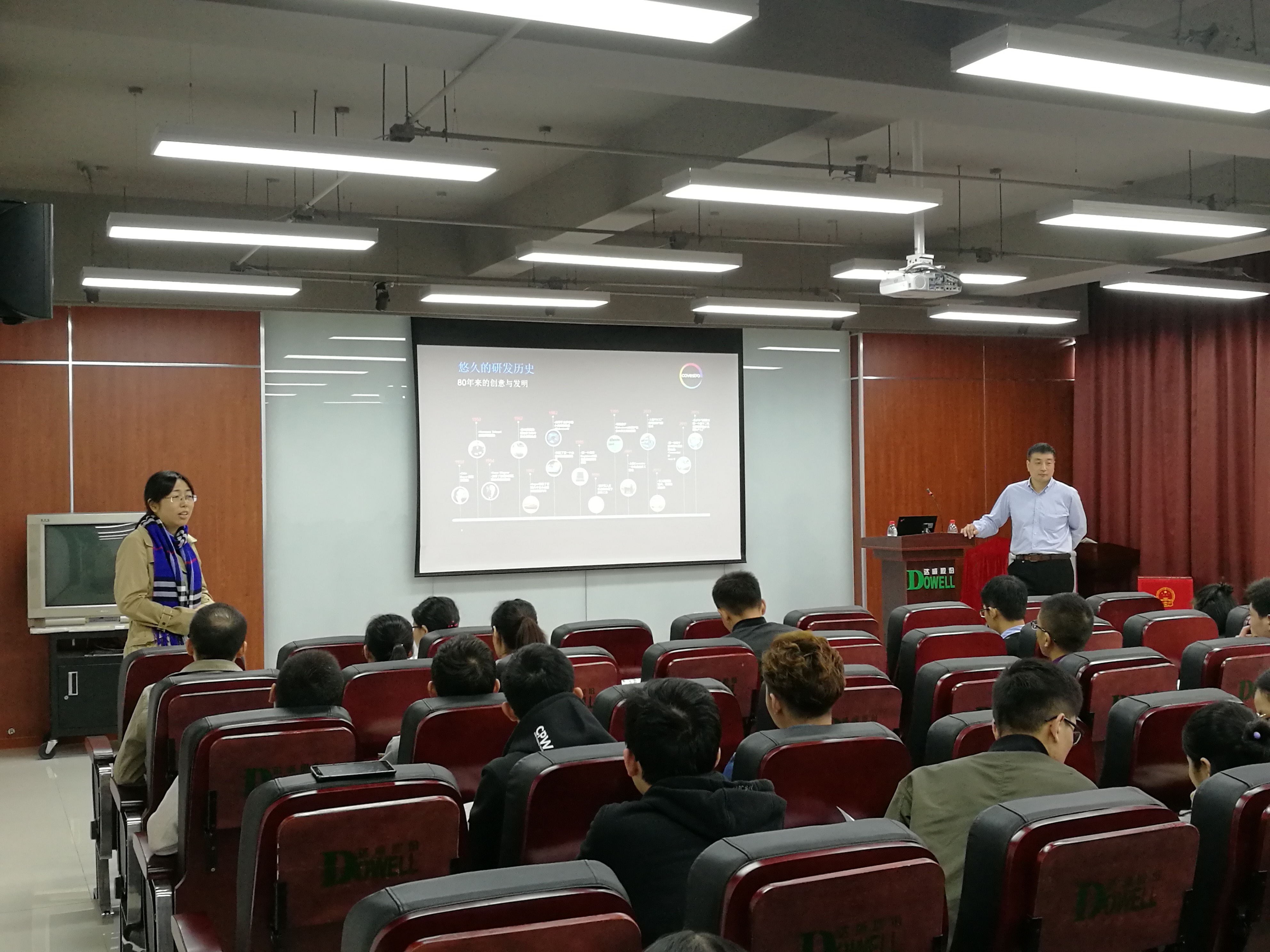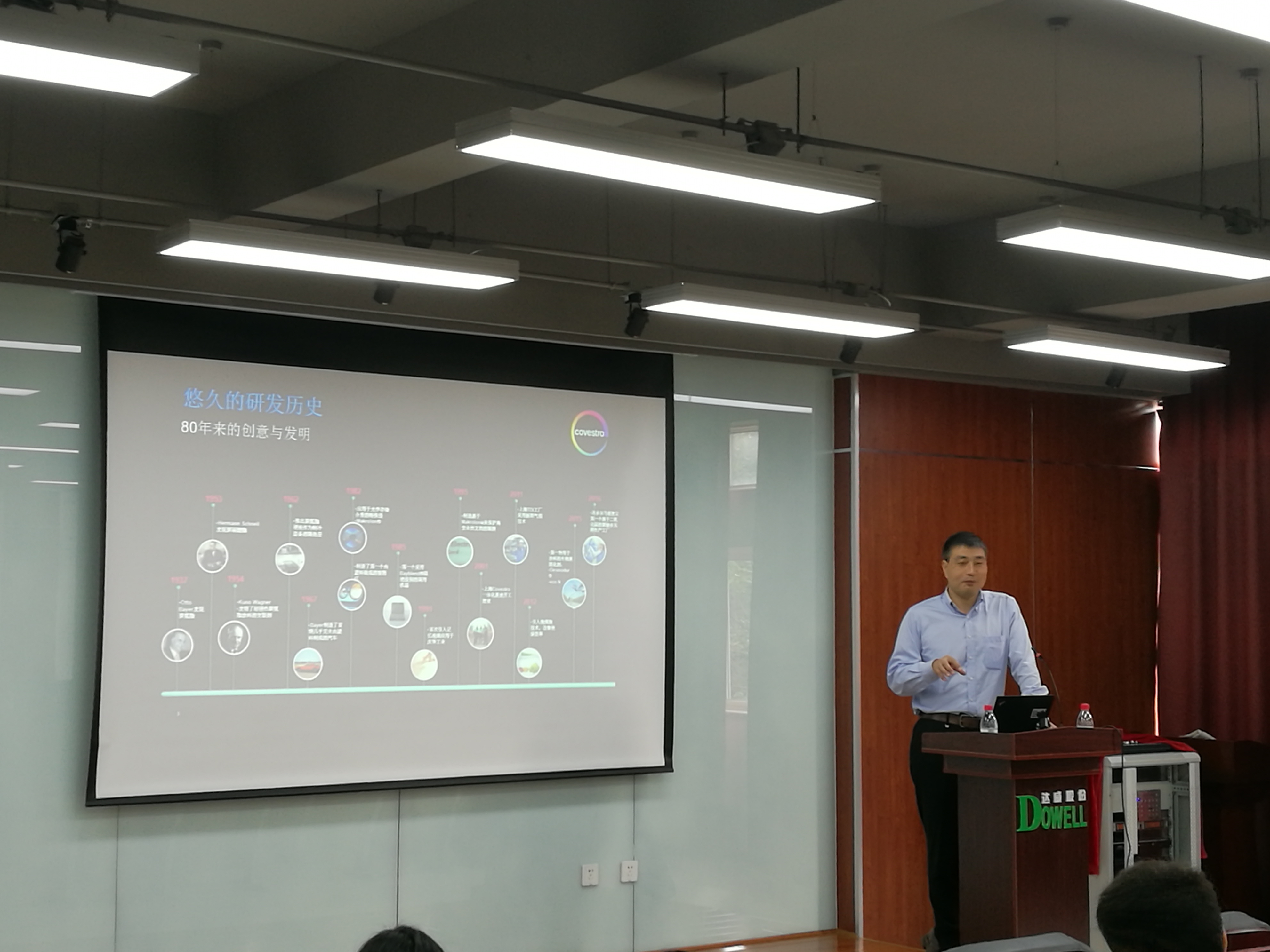进行学术技术交流,并在皮革楼二楼报告厅为研究生做了一场题为“聚氨酯技术进展及其应用”的精彩报告。报告会由林炜教授主持,轻纺与食品学院院长何有节教授介绍了李金旗先生的研究工作经历并致欢迎词。报告主要介绍了聚氨酯材料的合成方法原理、PU功能材料的特性及其广泛的应用现状,特别是我系师生感兴趣的PU在真皮革涂饰和合成革制造上的应用概况。会后青年教师和研究生与李总进行了讨论交流,并陪同参观了“奈菲影视