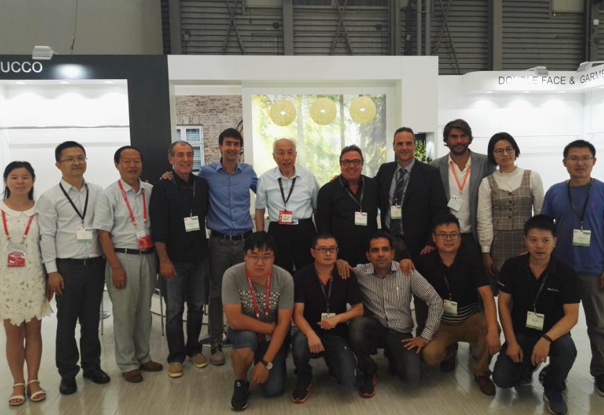 开发的新型功能皮革(超疏水皮革、具有电磁屏蔽等特殊性能的功能性皮革)。专职博士后在院长的带领下,与鸿丰公司高级技术代表桑义华经理在展位负责来访校友、客人的招待以及奈菲影视