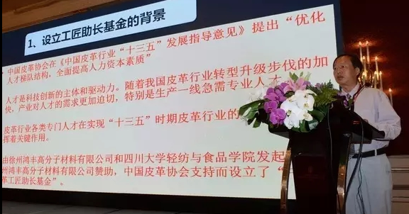 何有节院长在会上详细介绍了“中国皮革工匠助长基金”的设立背景、目标和运作情况。