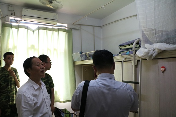 江安校区西园15舍查看内务情况,学院领导对同学们整洁的寝室卫生表示肯定。