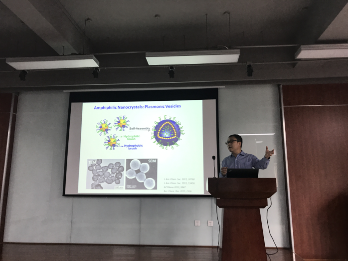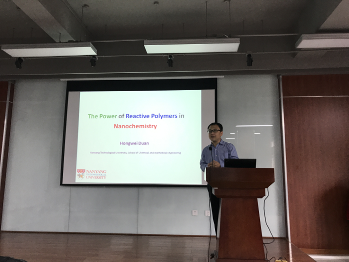 林炜教授主持。段宏伟副教授在会上作了一场题为“The Power of Reactive Polymers in Nanochemistry”的学术报告,介绍了其主要的研究方向和最新的研究成果。该会不仅有我校大量教师、研究生、本科生参加,还吸引了部分校外的学者们前来交流讨论。最后,大家带着思考和收获,以热烈掌声感谢段宏伟副教授的精彩学术报告,报告会在轻松活跃的气氛中落下帷幕。段宏伟教授本科和硕士分别就读于复旦大学化学系和高分子系,师从江明院士。他于2005年在马克思普朗克胶体界面研究所Helmuth Möhwald教授研究组完成博士论文,之后在佐治亚理工和Emory大学生物医学工程系和聂书明教授从事博士后研究。他在2009年加入新加坡南洋理工大学化学与生物医学工程学院,并于2015年晋升终身副教授。2017年被聘为奈菲影视