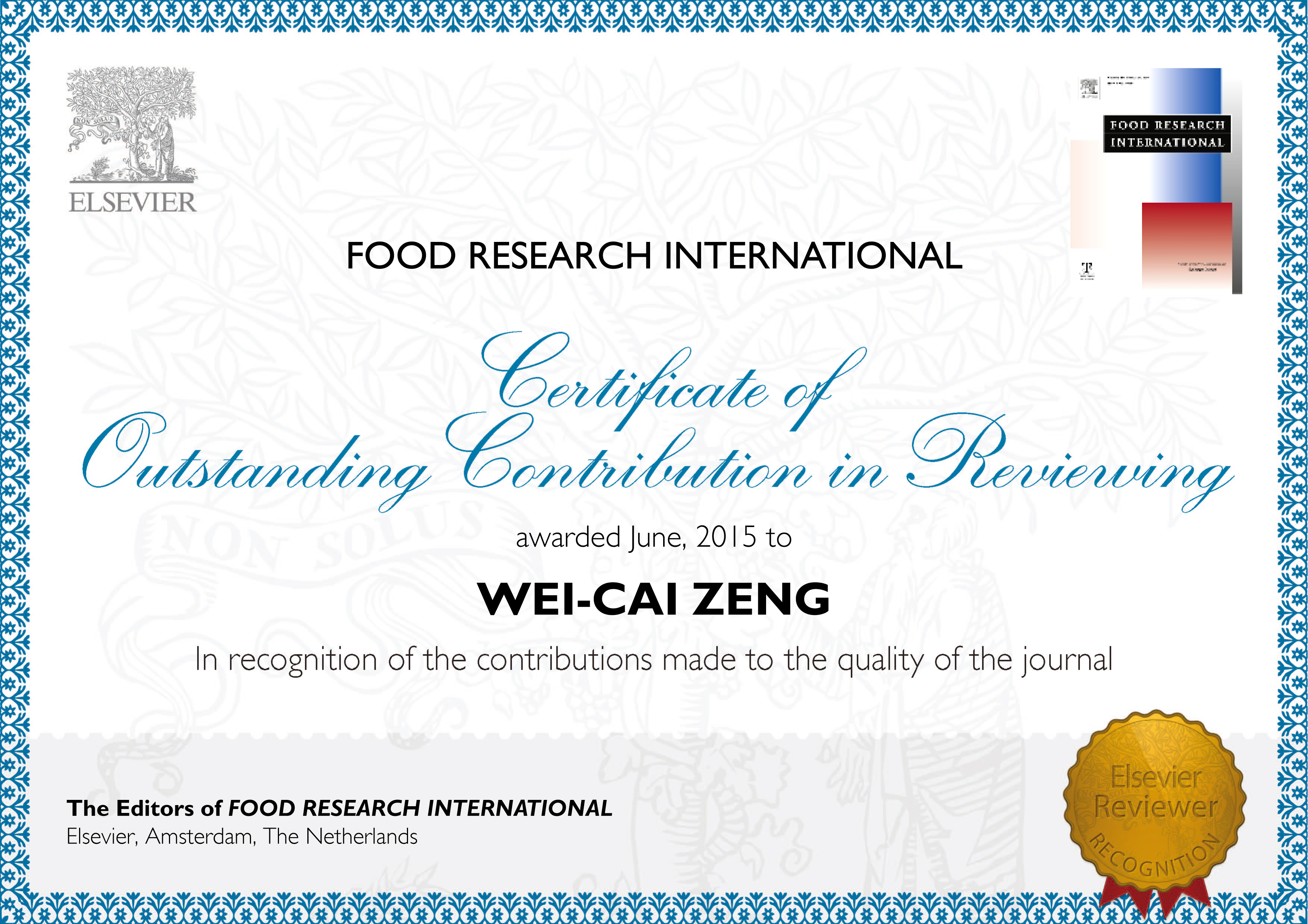 青年教师曾维才博士荣获由Elsevier出版社及食品类国际期刊《Food Research International》共同颁发的“2015年度杰出贡献奖”,这是奈菲影视