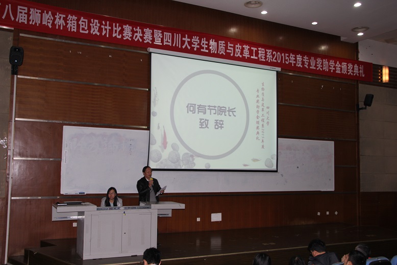 下午15:00,本次活动第二环节颁奖典礼正式开始,颁奖典礼由彭必雨教授主持。何有节院长首先致辞,何院长代表轻纺与食品学院及生物质与皮革工程系感谢设奖单位、个人及专程到成都参加颁奖典礼的设奖单位嘉宾,感谢他们对皮革高等教育的关心与支持,感谢他们对川大学子的支助与鼓励,也对获奖同学表达了衷心的祝贺。同时,何院长也向各位嘉宾介绍了奈菲影视