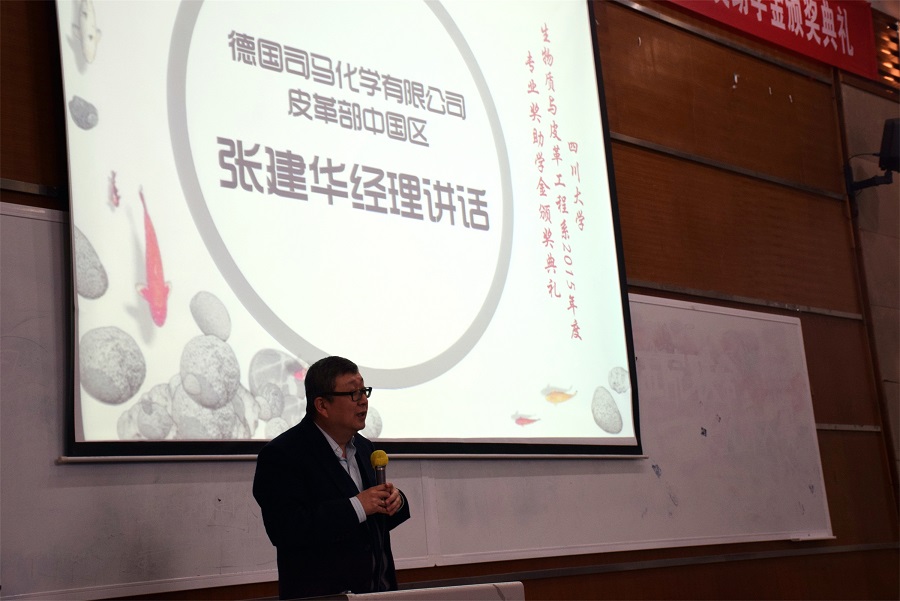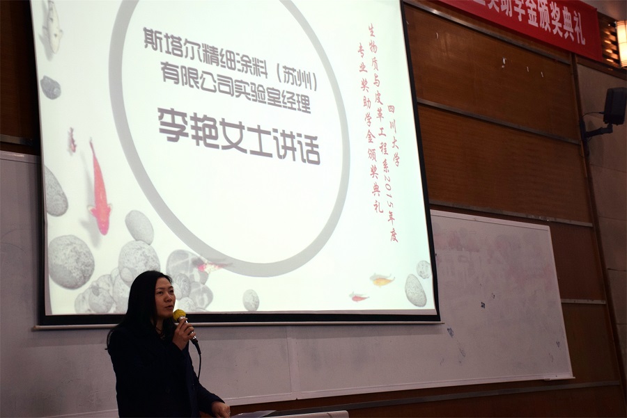 生物质与皮革工程近年来在教学、科研、人才培养等方面所取得的成绩。紧接着,设奖单位代表中国皮革协会陈占光秘书长,德国司马化学有限公司皮革部中国区张建华经理,斯塔尔精细涂料(苏州)有限公司实验室经理李艳女士分别进行了简短讲话。设奖单位代表均纷纷表示,希望通过奖学金的设立加强与高校在人才培养、技术交流等方面进行更深入的合作。随后,奈菲影视