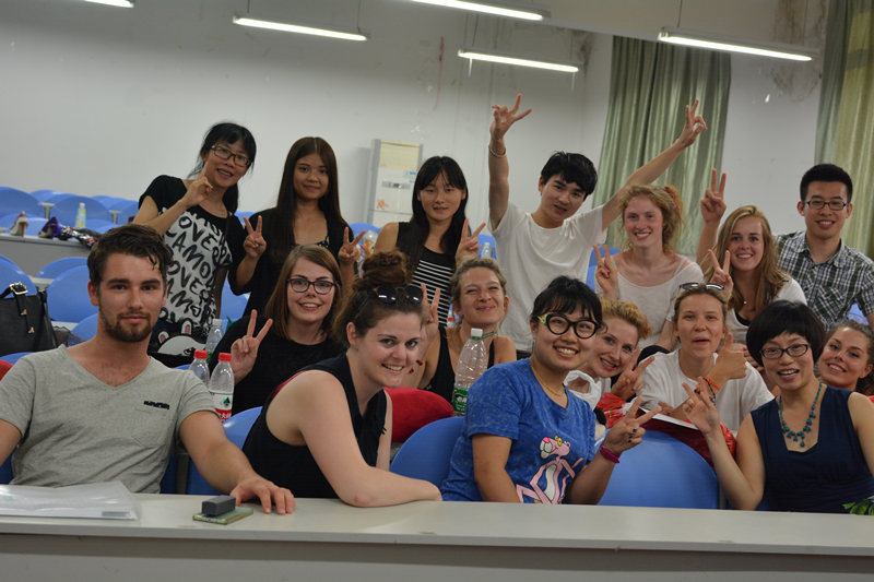 的营员们陪他们买生活必需品、买换洗衣物、帮他们寻找合口味的食物,花了大量的时间和精力,让留学生们觉得很温暖、很安全。在熊猫基地,炎热的天气让国宝懒洋洋的,却一丁点儿也不影响营员们交流,大家一边参观一边互留联络方式。中午,大家聚在一起品尝川菜,照顾留学生的口味,点了些不过于麻辣又有特色的菜品,微辣的凉面获得了青睐。饭后,为了帮助留学生购买具有中国特色的面料,魏丰然和陈旺顶着烈日,陪着留学生们远赴面料市场采购。下午五点,营员们回到纺工副楼205,大家眼中都泪光闪闪,互相赠送精心准备的小礼物,一一拥抱,互道保重。 相聚的时光虽然短暂,但是营员们都表示收获颇丰,长了见识,锻炼了口语,大家朝夕相处,还结下了深厚的友谊。