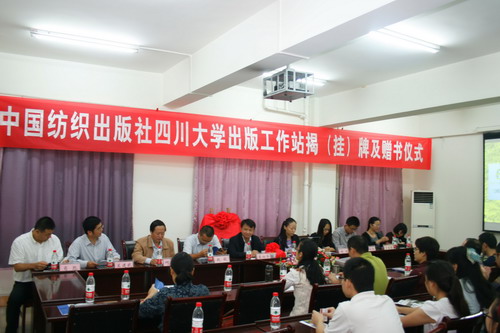 望江校区纺工楼321室如期举行。中国纺织出版社总编辑李炳华,服装图书分社副社长张晓芳,图书营销中心副主任杨旭一行六人,及轻纺与食品学院党政领导,纺织服装等专业的教师、研究生共计30余人参加了此次活动。仪式由兰建武副院长主持,何有节院长代表轻纺与食品学院致欢迎词,赵毅书记与李炳华总编合力完成工作站的揭牌,肖凯副院长代表学院接受了出版社的赠书,最后由出版社李总编向工作站负责人颁发了工作站聘书。至此,“中国纺织出版社奈菲影视