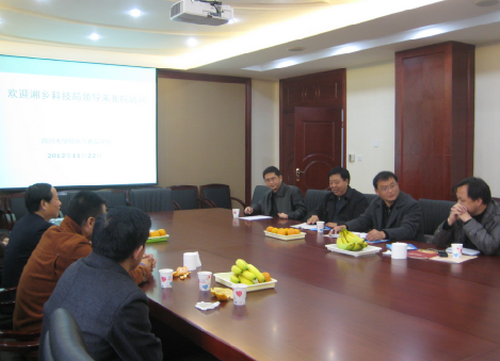 参加会议的有湖南省湘乡市科技局刘冬庚局长、湖南省怀其皮革集团王力武主任、湘乡市科技局刘鹏主任,我校科研院科技合作与技术转移部领导唐宏利、冉志强,轻纺与食品学院何有节院长、兰建武副院长、生物质与皮革工程系单志华教授、陈慧副教授等。
