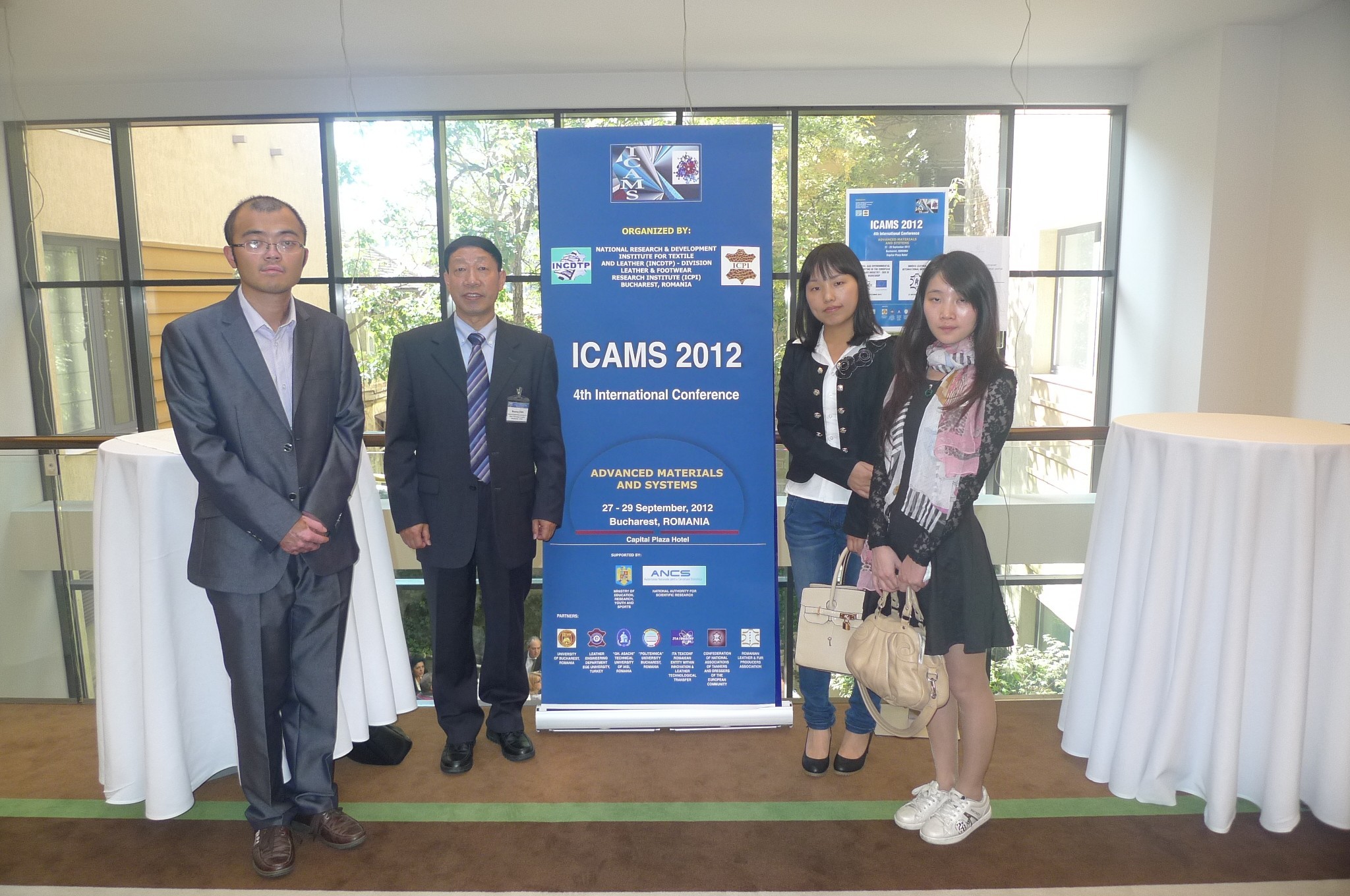在执行本次国际合作项目期间,我方还出席了在罗马尼亚布加勒斯特举行的第四届先进材料与系统(ICAMS),会议由罗马尼亚纺织与皮革国家研究所、布加勒斯特大学等联合举办。会议内容包括材料、环境、系统与技术、文化遗产、质量管理等议题。该国际会议有19个国家,118人参会,发表会议论文98篇,其中与皮革相关的论文38篇。陈武勇教授担任了材料分会主席,滕博博士以及刘晓玲、程凡硕士分别在系统与技术、材料分会上宣读了与罗方研究人员合作发表的科技论文。此次会议上,我方共有七篇论文被收录,其中中-罗和中-捷合作发表五篇。(刘晓玲,陈武勇)