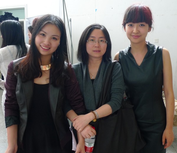 入围选手李文娟、杨月双同学与指导教师周怡老师在后台