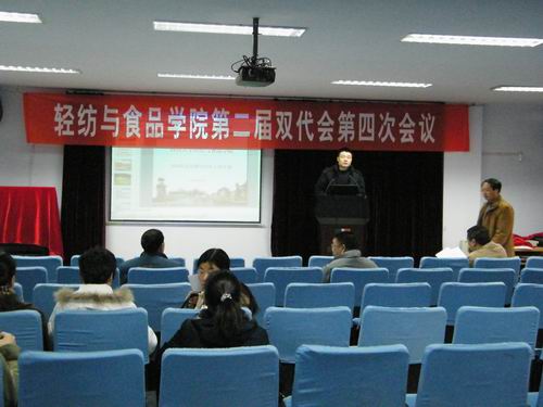 轻纺与食品学院第二届双代会第四次会议于2011年1月12日,在皮革楼报告厅召开。学院双代会全院教职工政治生活中的一件大事,是广大教职工参政、议政的重要途径,也是群策群力办好学院有效措施,36名正式代表,84名列席代表及9名特邀代表以饱满的政治热情和高度的主人翁责任感出席了此次会议。 学院党委书记赵毅副教授代表学院党政致辞,预祝大会取得丰硕成果,圆满成功。并且指出学院的发展,学院每一项进步和成绩,都离不开全院每一位教职工的理解和支持,都凝结着全院每一位教职工的心血和汗水,都是全院教职员工奋力拚搏的结果。同样,我们每位同志所取得的成绩,也离不开学院这一和谐宽松的环境,这一浓厚的学术氛围,这一培养人的肥沃土壤!请各位同志以院为家,热爱学院、热爱专业、热爱和珍惜自己的工作岗位,认真履行自己的义务和使命,谦虚、谨慎、不骄、不躁、艰苦奋斗、再接再厉、再创辉煌,使我们学院的各项事业不断蒸蒸日上! 与会代表听取和审议了学院院长何有节教授所作的“学院工作报告”、“财经工作报告”,并对学院2011年工作提出了几点建议。“工作报告”客观全面地总结了2010年学院的教学、科研、学科建设、对外交流、师资建设、学生等方面的工作,同时,奈菲影视