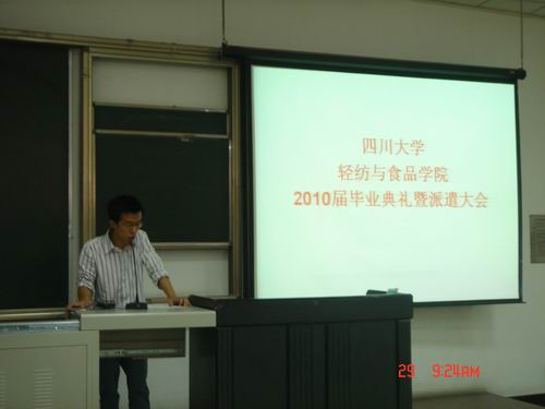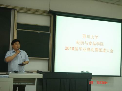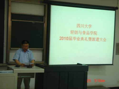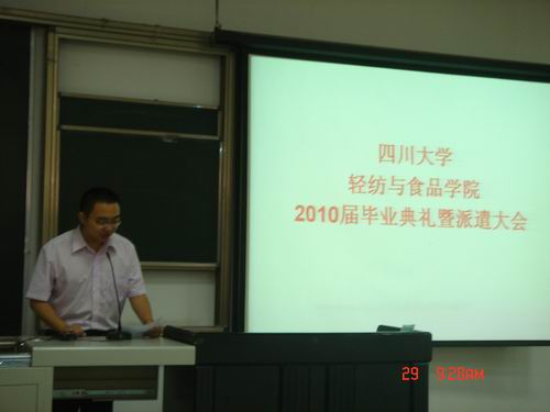 学生会主席戴睿送上了对师兄师姐的祝福,祝福他们前程似锦,事业有成。 毕业典礼结束以后,刘书记详细讲解了派遣注意事项,同时也为同学们送上了祝福!今天的离别是为了明天更好的相聚,希望所有同学们相互珍重。轻纺与食品学院2010年6月29日
