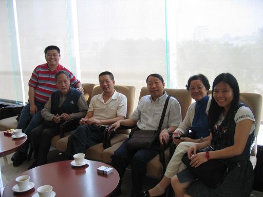 皮革系广东校友会常务副会长倪建荣(图片左1)、会长周阳春(图片左3)、原广东省二轻厅副厅长54级校友万克武等校友在聚会上发言,表达了利用校友会平台“联络感情、交流信息、互相帮助、共谋发展”和为母校作贡献的愿望。陈武勇代表皮革系对校友会成立以来在学生实习就业、奖学金设立、资助学生、建言献策等对学校的大力支持表示感谢!图片左2为57级校友原广州人民制革厂厂长白坚、右2为57级校友原广州人民制革厂总工程师张小林。