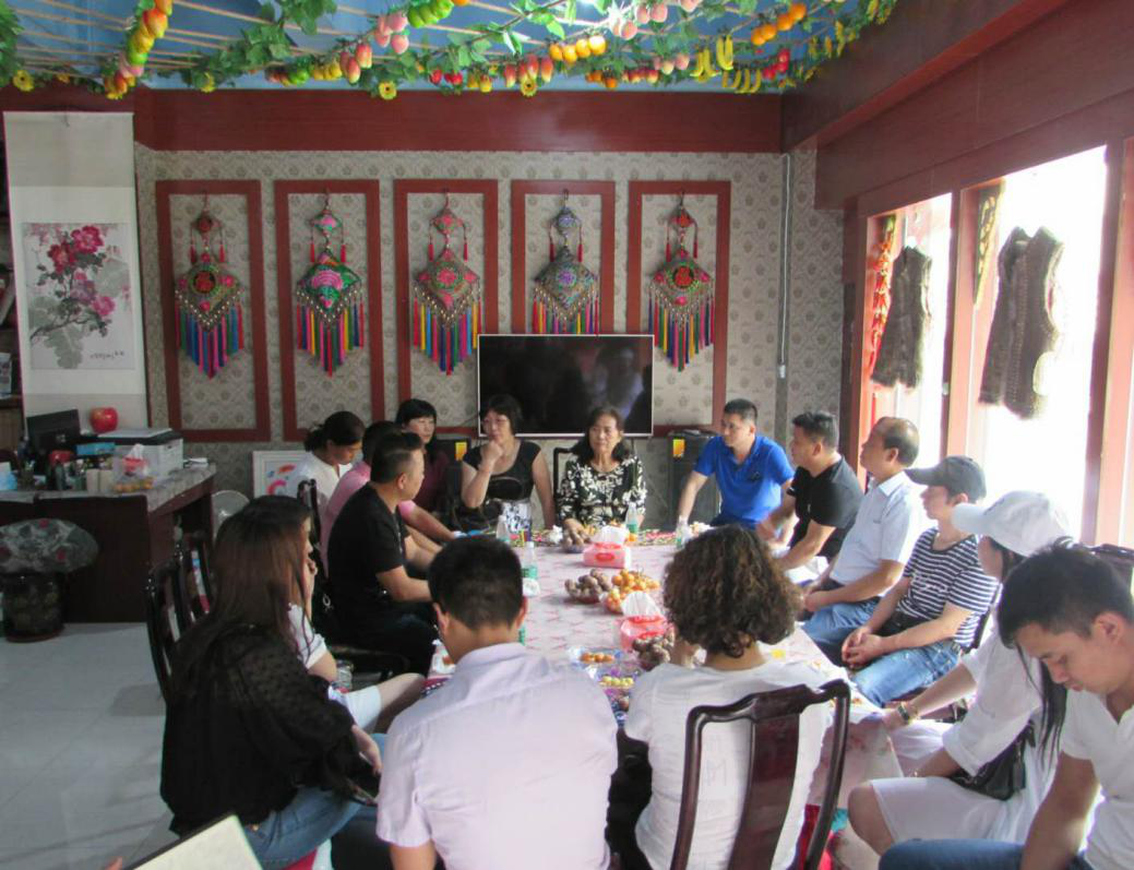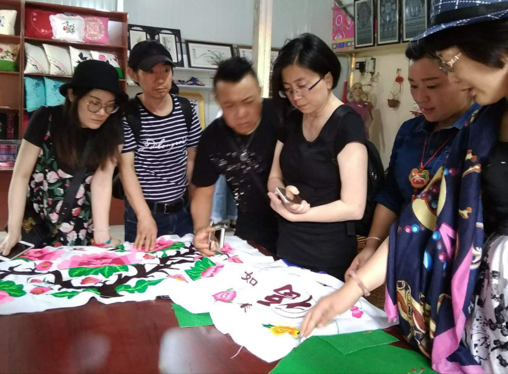 �3 赵武主任带领老师们在绣坊内与绣娘进行讨论