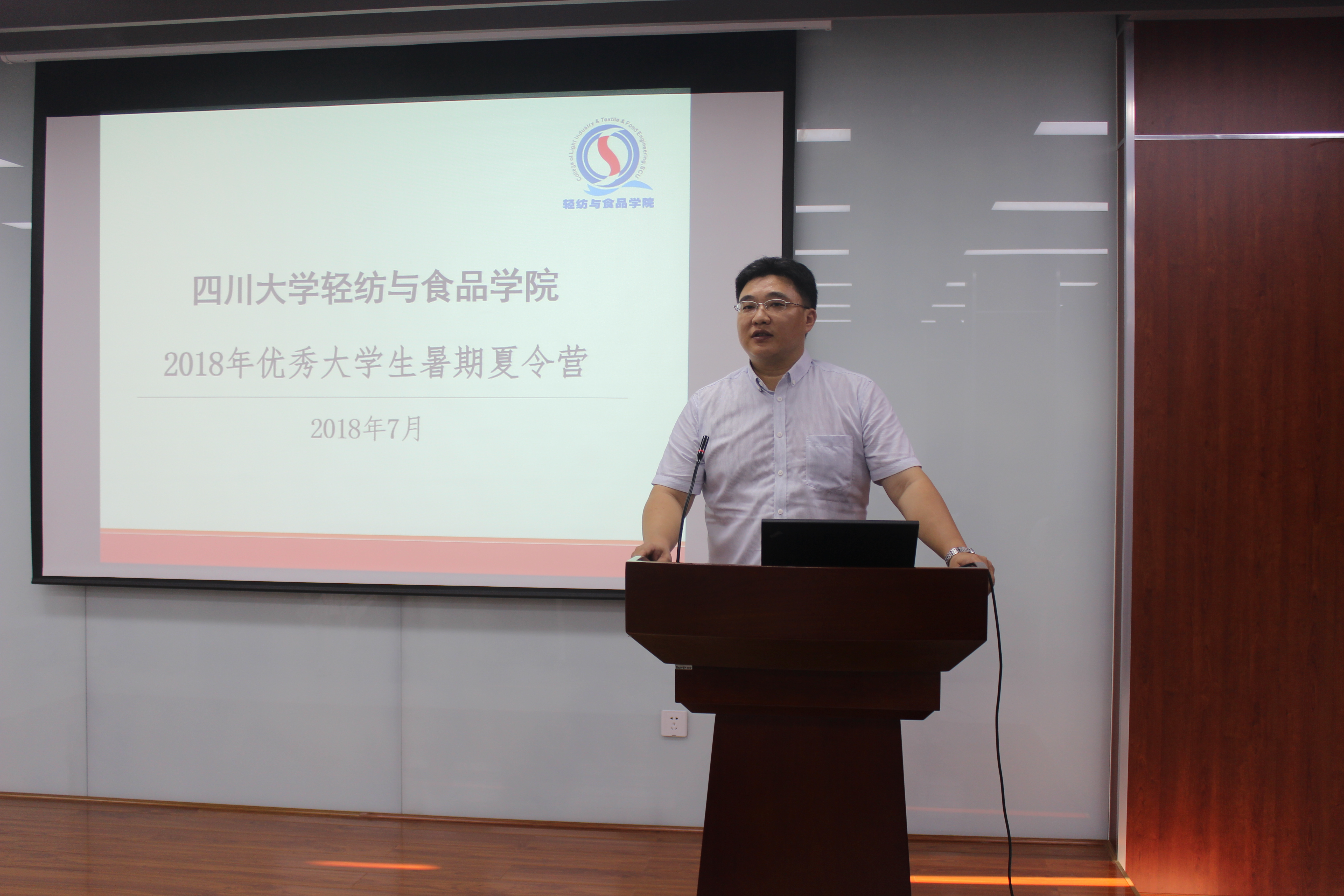 开营仪式于2018年7月23日上午8:30在皮革楼报告厅举行,参加本次开营仪式的有轻纺与食品学院党委书记刘晓虎副教授、副院长何强教授、国家级教学名师陈武勇教授、纺织与服装工程系系主任郭荣辉副教授、生物质与皮革工程系副系主任杨璐铭副教授、食品工程系副系主任迟原龙副教授以及学院党政办主任李慧老师、辅导员贺婷老师。首先,刘晓虎书记代表学院党政对来自全国各高校的44位营员表示热烈欢迎,并对为本次夏令营举行付出辛勤努力的各位老师表示感谢;同时,刘书记介绍了我校作为双一流建设A类高校,奈菲影视
