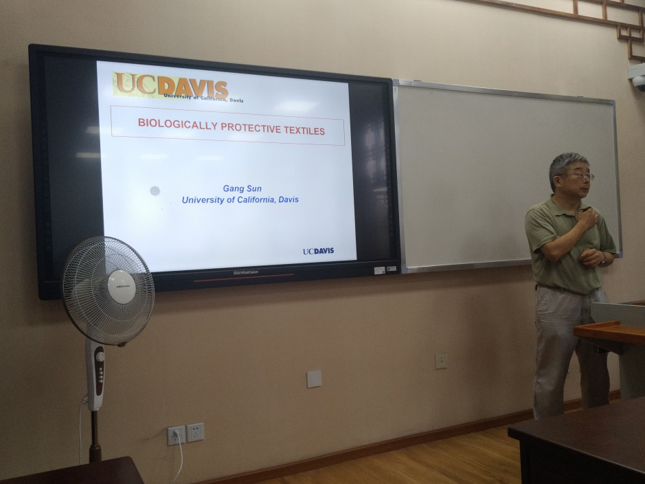 为了培养学生同时具有扎实�专业知识�宽广�国际视野,我院在�国际课程��期间特别邀��美国加州大学戴维斯分��博士生导师、国际纺织化学界最高荣誉奥尔尼奖章�Olney Medal)获得者孙刚(Gang SUN�教授�为纺织工程专��本科生开设全英文课程�Functional Textile����研究生做题为�Challenges in Teaching and Research in Textile Chemistry�的学术报告�