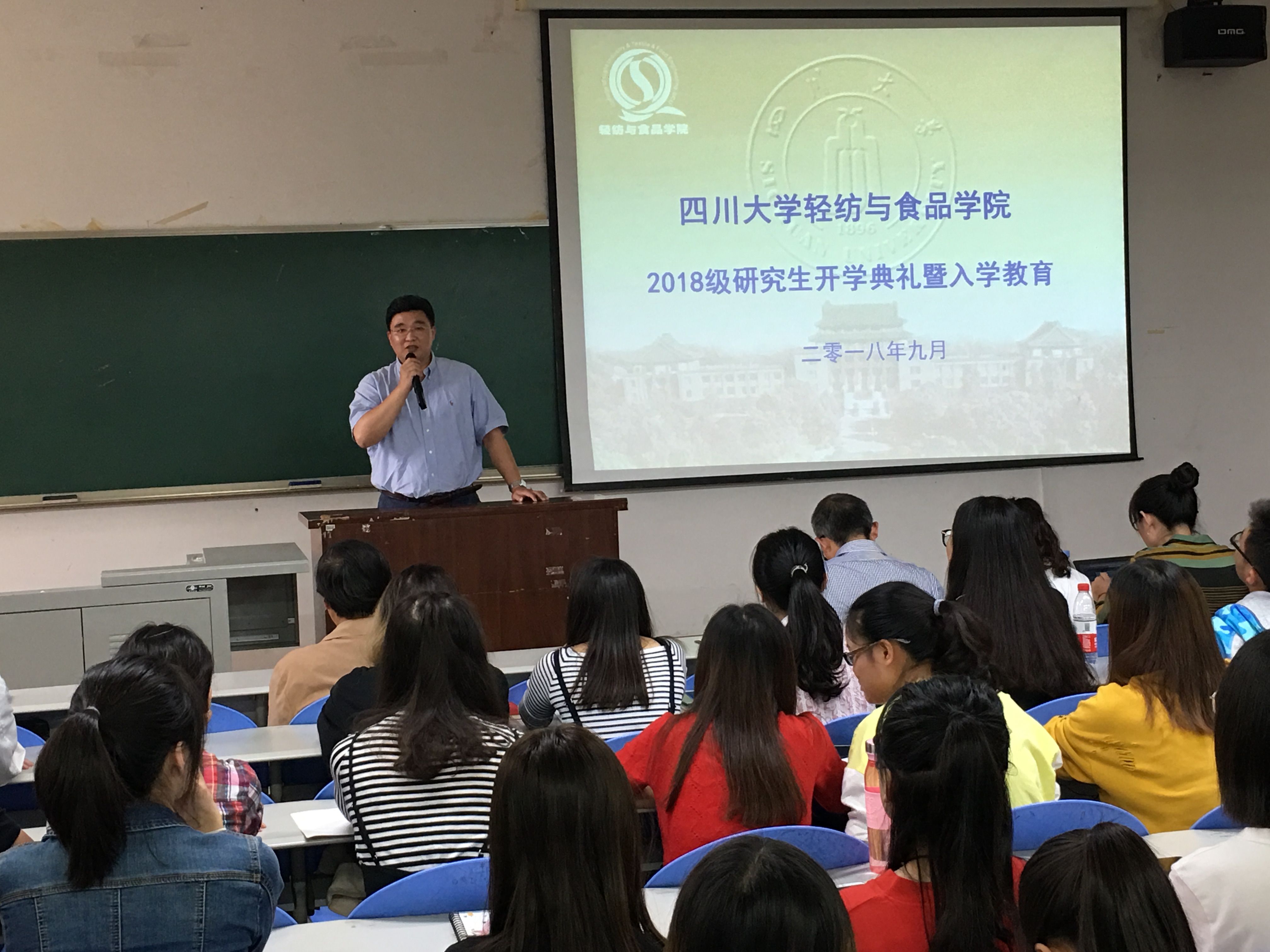 轻纺与食品学院2018级研究生开学典礼暨入学教育在纺工附楼205隆重举行。参加本次开学典礼的有学院党委书记刘晓虎副教授、院长何有节教授、副院长何强教授、生物质与皮革工程系副系主任杨璐铭副教授、纺织与服装工程系副系主任施亦东副教授、研究生教务员徐雅琳老师以及2018级全体研究生新同学。开学典礼由院党委副书记冯国涛老师主持。