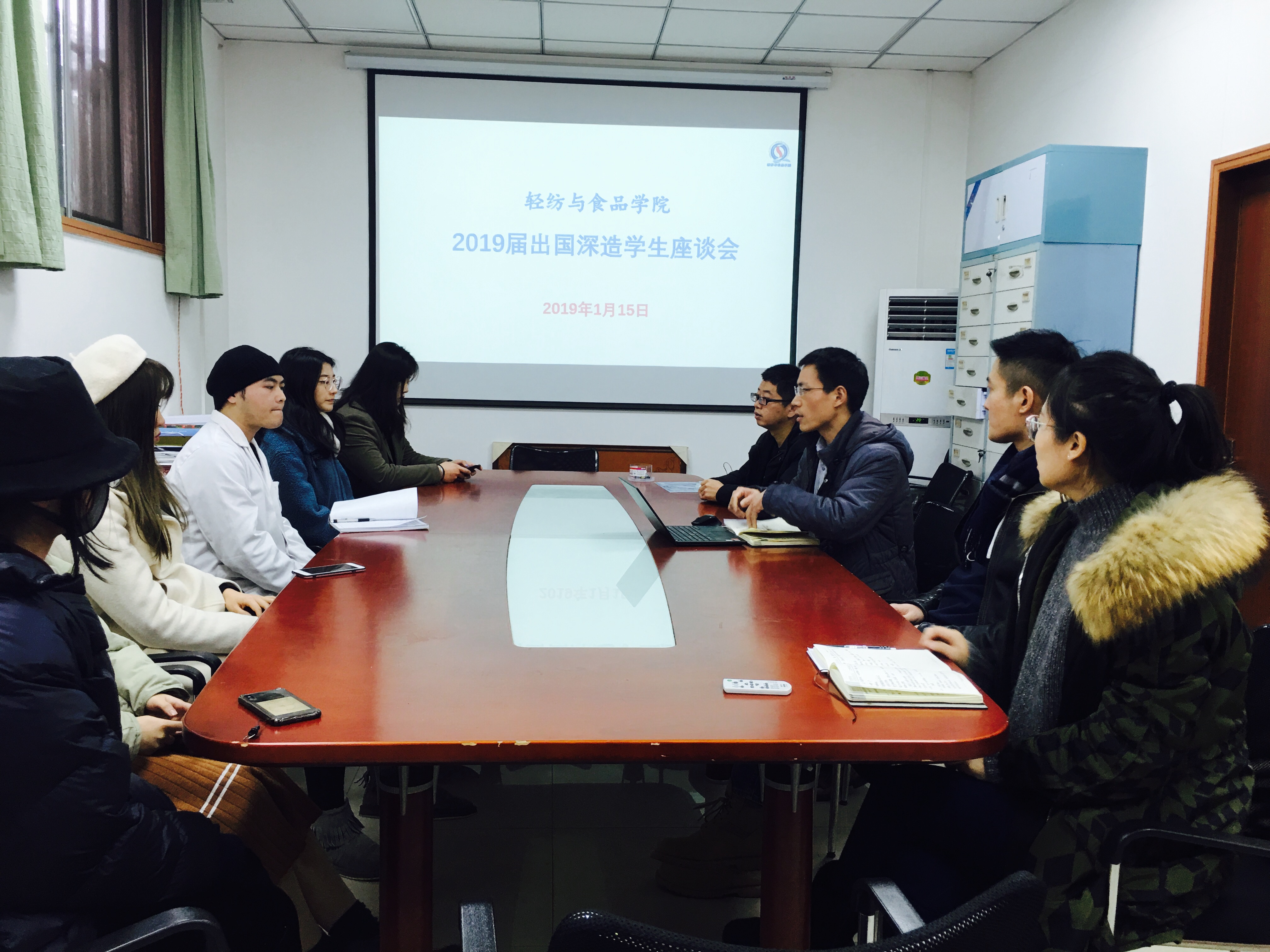 本科生毕业后的出国出境深造机会,增强拟出国出境学生的经验交流与分享,学院于2019年1月15日下午15:00在纺工附楼201会议室召开2015级本科拟出国出境学生交流会。学院党委副书记冯国涛老师、2015级辅导员贺婷老师、有着国外学习生活经历的林绍建特聘副研究员、王巍老师以及2015级拟出国出境深造的同学代表参加了此次交流会。