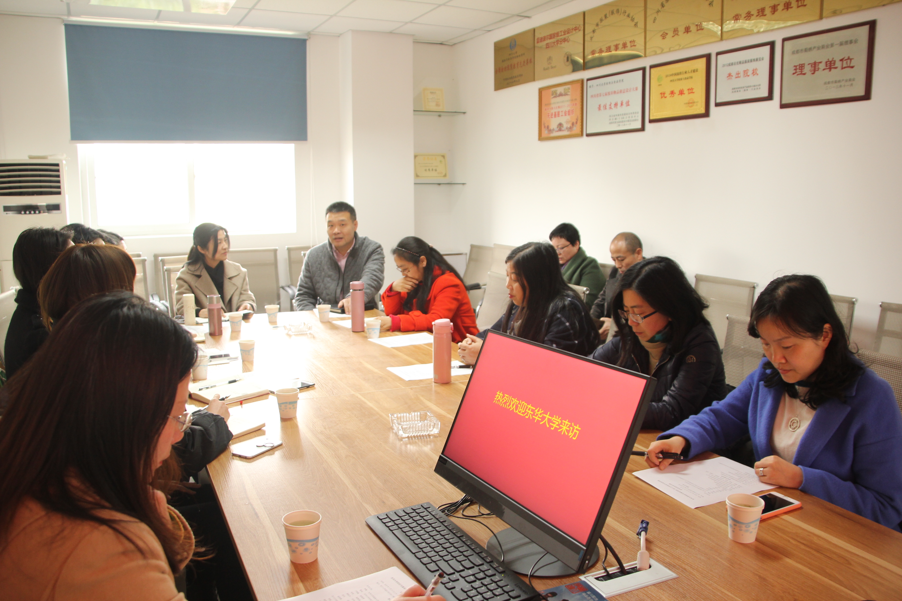 2019年3月15日上午,东华大学服装与艺术设计学院副院长李敏及服装设计与工程系副系主任鲁成一行7人到奈菲影视