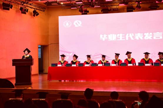毕业生代表,食品科学与工程专业陈琳同学回顾了四年来在川大,在轻工科学与工程学院的学习经历和生活感受,感恩学校与学院文化带给同学们的深刻影响,号召全体毕业生“不负师恩,不灭理想,不辞辛苦,不忘初心。竭尽所能创造更有价值、更有意义的人生”,也祝愿大家“长风破浪会有时,直挂云帆济沧海,前程似锦,毕业快乐”�