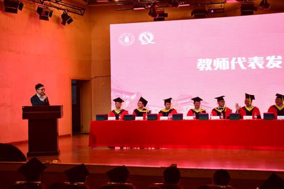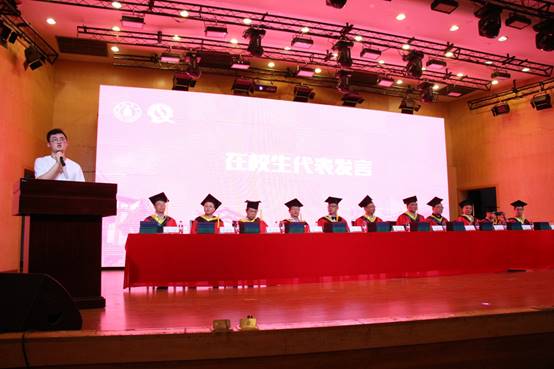 何有节院长代表学院党政,向圆满完成学业并获得�位的174名本科生�88名硕士研究生�18名博士研究生表示热烈祝贺,向为同学成长付出心血的所有教职员工、学生家长表示感谀何院长回顾�2019届毕业生从进校到现在与学院的共同成长和健康快速的发展。为同学们指出新时代为同学们创造了广阔的发展空间,中华民族的伟大复兴为同学们指明了奋斗的方向,相信大家能谱写辉煌的人生篇章。同时何院长也提出了三点希望,希望同学们志存高远、回馈社会;脚踏实地、立足平凡、认真工作;也希望同学们常回家看看。最后,何院长祝愿全体毕业生在人生新的征途中,找准定位,抓住机遇,在新的岗位上创造出无愧于伟大时代的辉煌业绩�