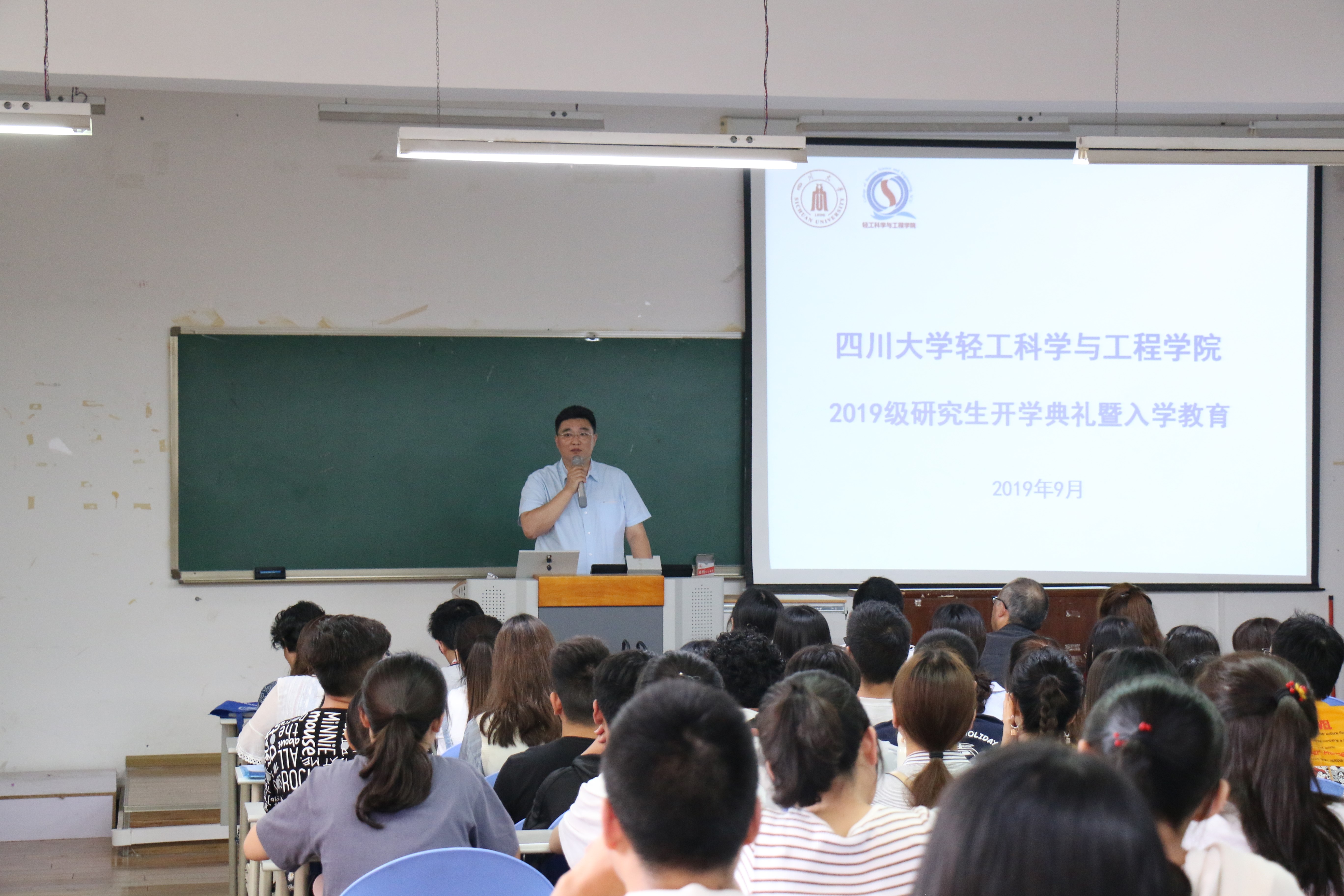 2019级研究生开学典礼暨入学教育在纺工附楼205隆重举行。参加本次开学典礼的有学院党委书记刘晓虎副教授、学院党委冯国涛副书记、副院长何强教授、生物质与皮革工程系系主任林炜教授、食品科学与工程系副系主任迟原龙副教授、纺织与服装工程系副系主任施亦东副教授、研究生教务员徐雅琳老师、研究生辅导员李晓秀老师以及2019级全体研究生新同学。开学典礼由学院党委冯国涛副书记主持。