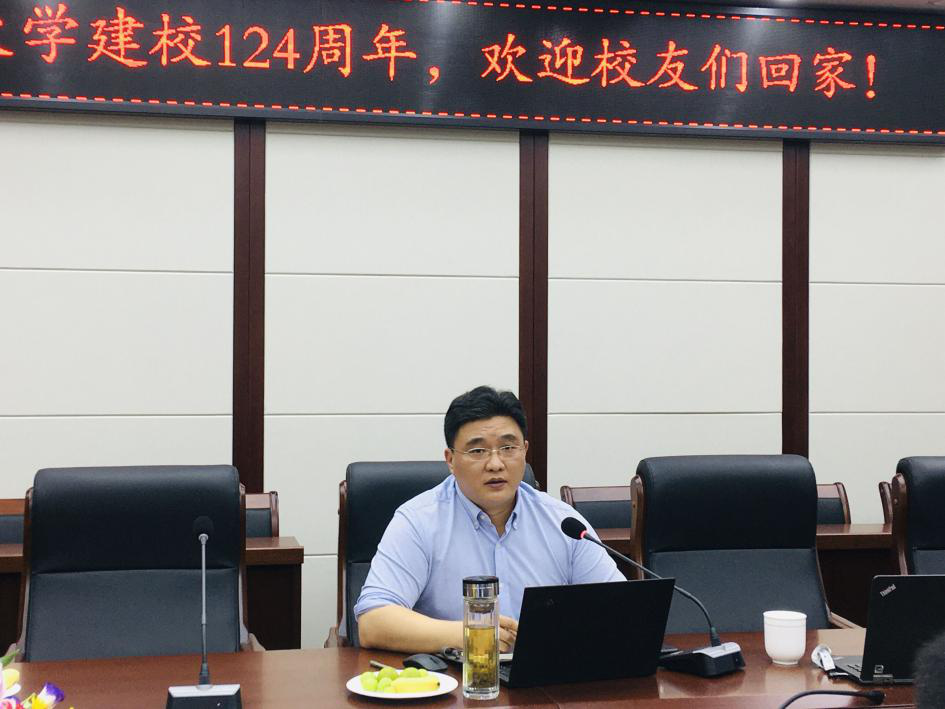 现有发展情况、学院现有成果以及学科专业发展近况、教育教学改革成效、校友工作与学院发展等五个方面向与会校友介绍了学校和学院发展情况,向校友长期以来对学院工作支持表示感谢。