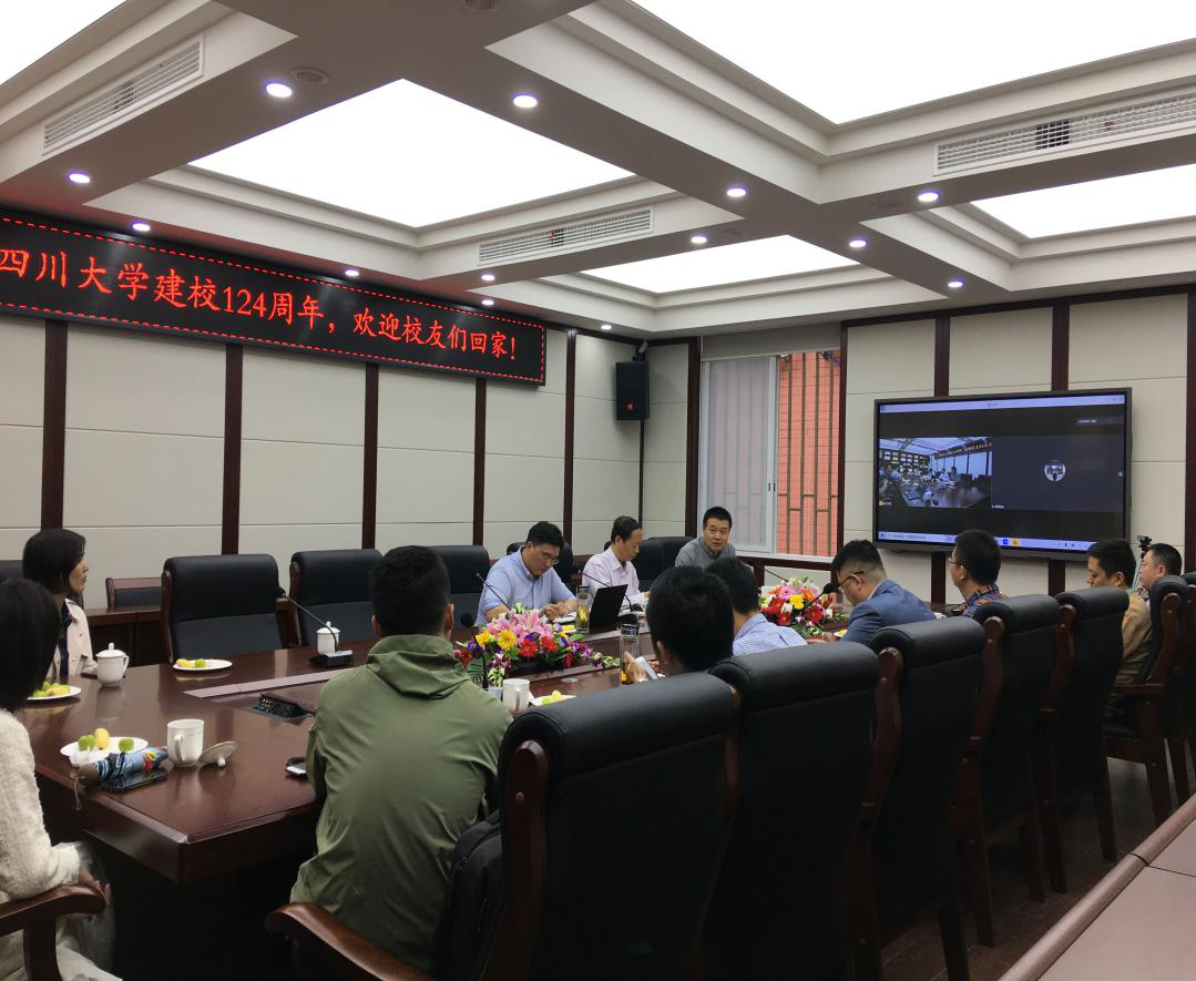 建校124周年暨华西医学110周年华诞校友云座谈会。学院党委书记刘晓虎副教授、院长何有节教授、党委副书记冯国涛老师、副院长肖凯老师以及部分在蓉校友出席会议,其余校友在云端参会。会议由副院长肖凯老师主持。