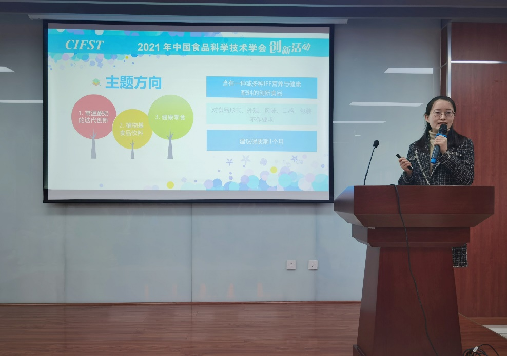 中国食品科学技术学会莎菲工程师对本�IFF营养与健康两岸学生创新大赛竞赛规则进行介绍。沙老师从大赛主旨、主题方向、参赛资格以及比赛流程等方面进行了详细的介绍,帮助同学们更全面地了解本次比赛�