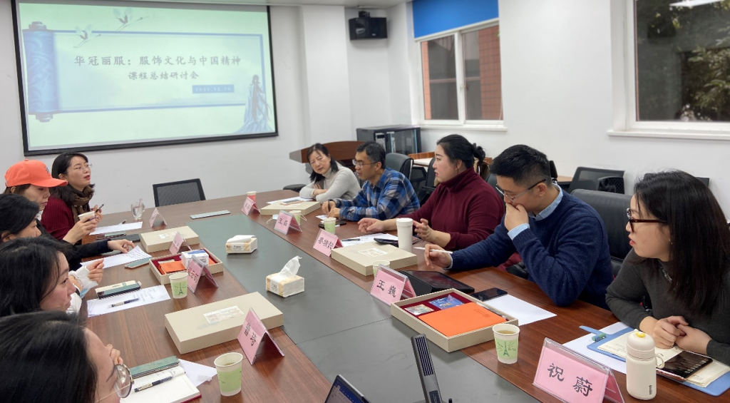 随后,课程组教师就本学期学生参与度、课堂活跃度、作业完成度、培养目标达成度等展开了深入讨论,并结合各自专业背景从不同角度深度解析华服变迁,力求专业知识通识化,引导同学们从了解基础知识到激发高阶思维的转变。根据本学期的课程总结,对下一学期的授课内容、板块衔接、各版块切入点、考核方式、互动手段等做出了相应的调整计划。