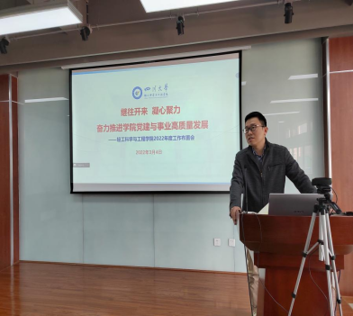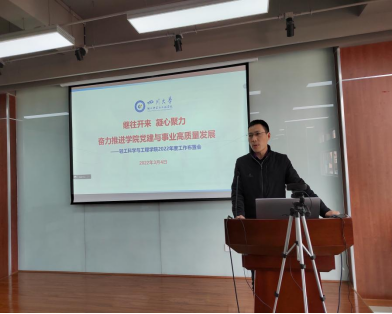 首先,李天富书记代表学院党委传达学校“双代会”暨2022年度工作布置会相关内容,并在学院新一届领导班子深入系(所)全面调研基础上,对标学校工作要求分析了我院当前面临的形势与不足。同时,结合学院工作实际,李书记提出了“四抓四促”的工作思路与举措,一是抓党的建设,促师生活力;二是抓深化改革,促内涵发展;三是抓内外联动,促资源共享;四是抓管理运行,促提质增效�