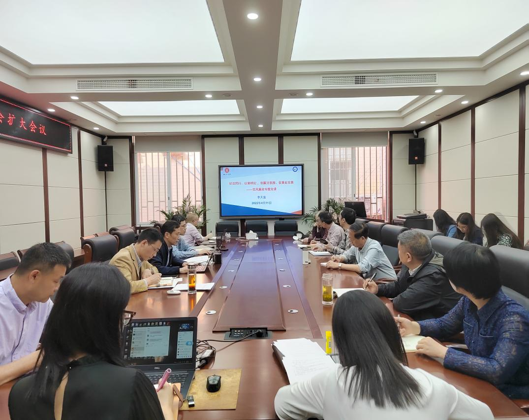 2022年全面从严治党工作要点》及2022年党风廉政教育宣传月活动相关要求,学院于4月11日上午在纺工附楼205会议室召开2022年全面从严治党暨党风廉政教育宣传月工作布置会。学院全体班子成员、两委委员、系所负责人、教工党支部书记、科级干部、辅导员和党政办相关人员参加本次会议。会议由学院党委副书记兼纪委书记冯国涛老师主持。