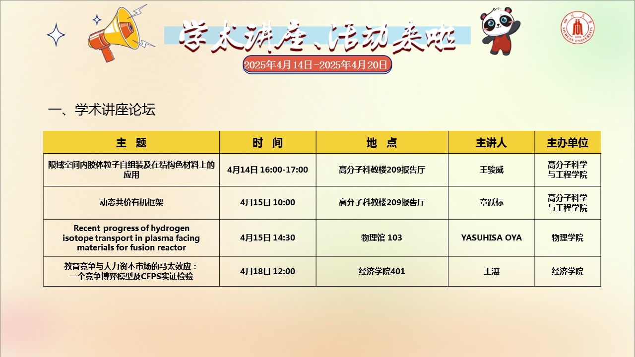 学术讲座论坛及校园文化活动预告(2025年4月14日-2025年4月20日)